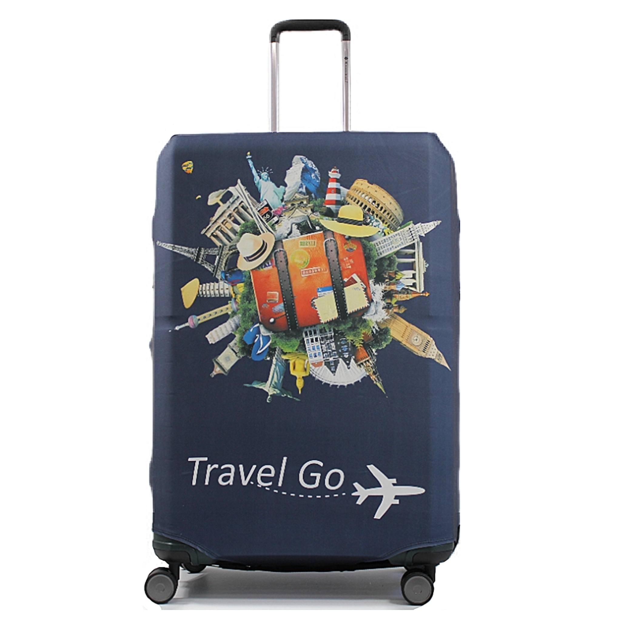 Чехол гигант XL ( для гигант чемодана ): высота без колес – 72-78 см, ширина – 50-55 см, глубина – 30-35 см- Вес: 0,50 кг
