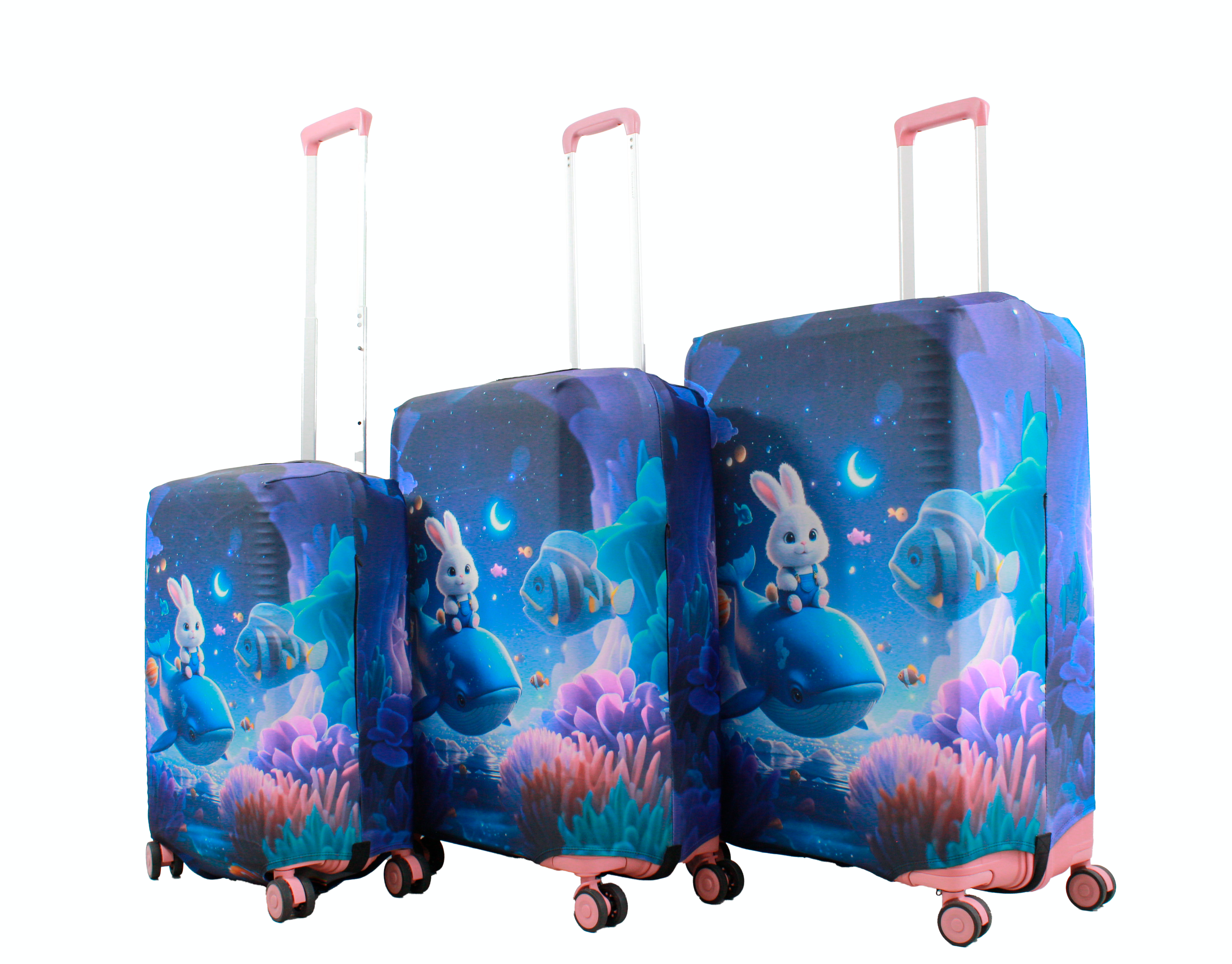 Чехол для чемодана Польша большой L ткань (дайвинг) киты /Fly 841-28