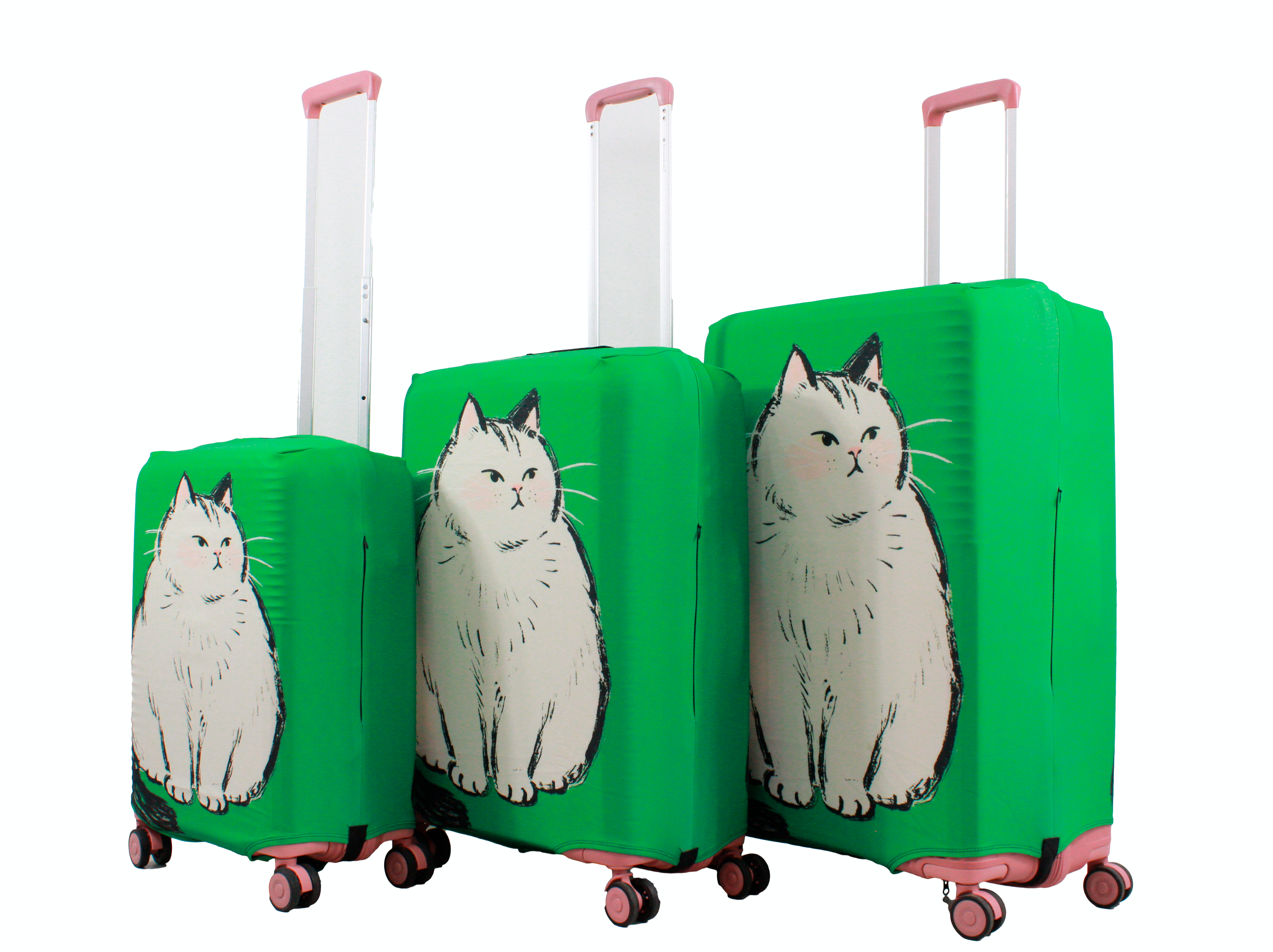 У чохлі є спеціальні прорізи для коліс валізи, а також для вертикальної та горизонтальної ручки. Для надійної фіксації чохла на валізі, він знизу обладнаний застібкою блискавкою і застібкою на резинці.  Одягається він дуже просто та швидко. Завдяки цьому стильному аксесуару Ваш багаж виглядатиме яскраво, а валіза збереже свій первозданний вигляд на довгий час.