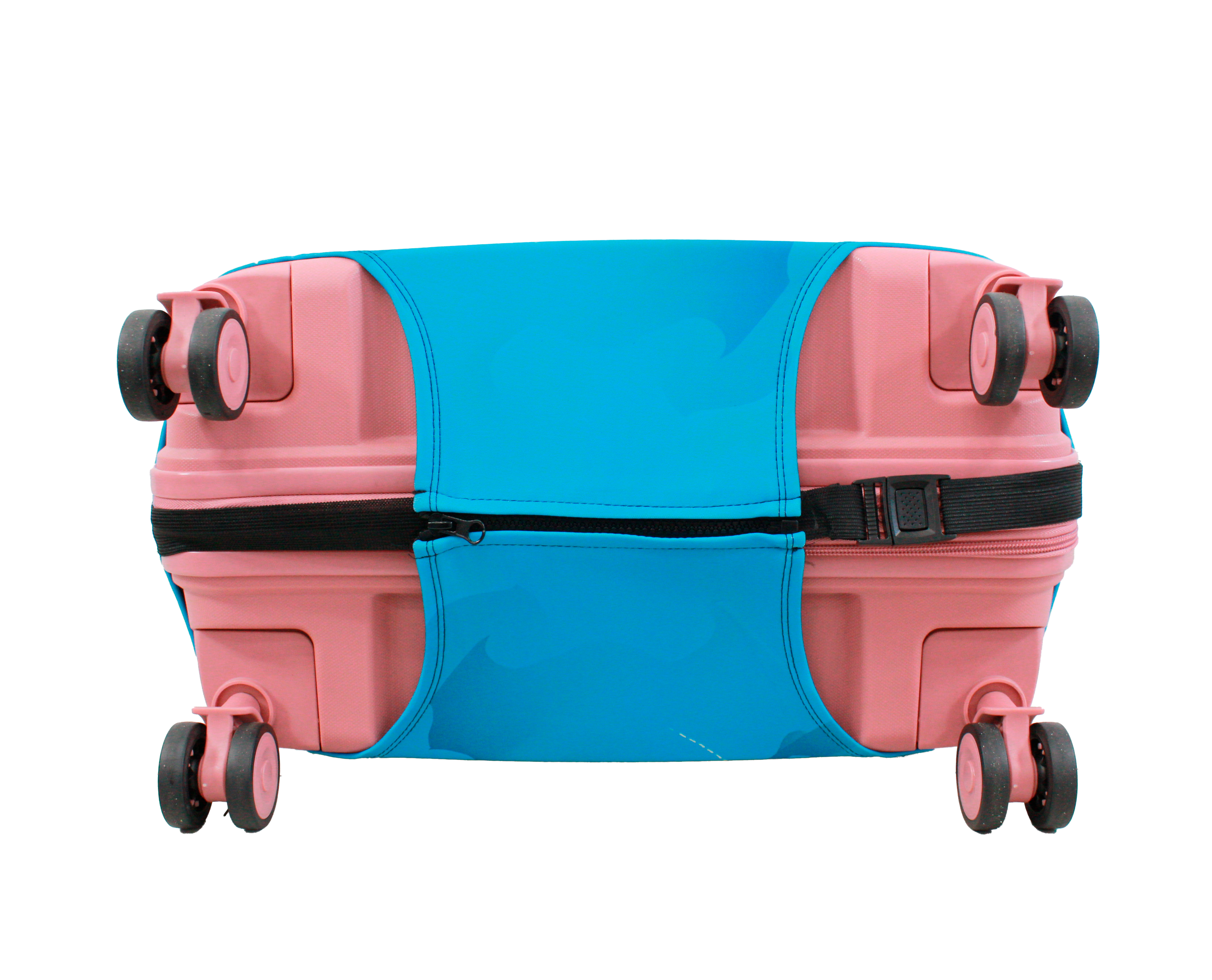 У чохлі є спеціальні прорізи для коліс валізи, а також для вертикальної та горизонтальної ручки. Для надійної фіксації чохла на валізі, він знизу обладнаний застібкою блискавкою і застібкою на резинці.  Одягається він дуже просто та швидко. Завдяки цьому стильному аксесуару Ваш багаж виглядатиме яскраво, а валіза збереже свій первозданний вигляд на довгий час.