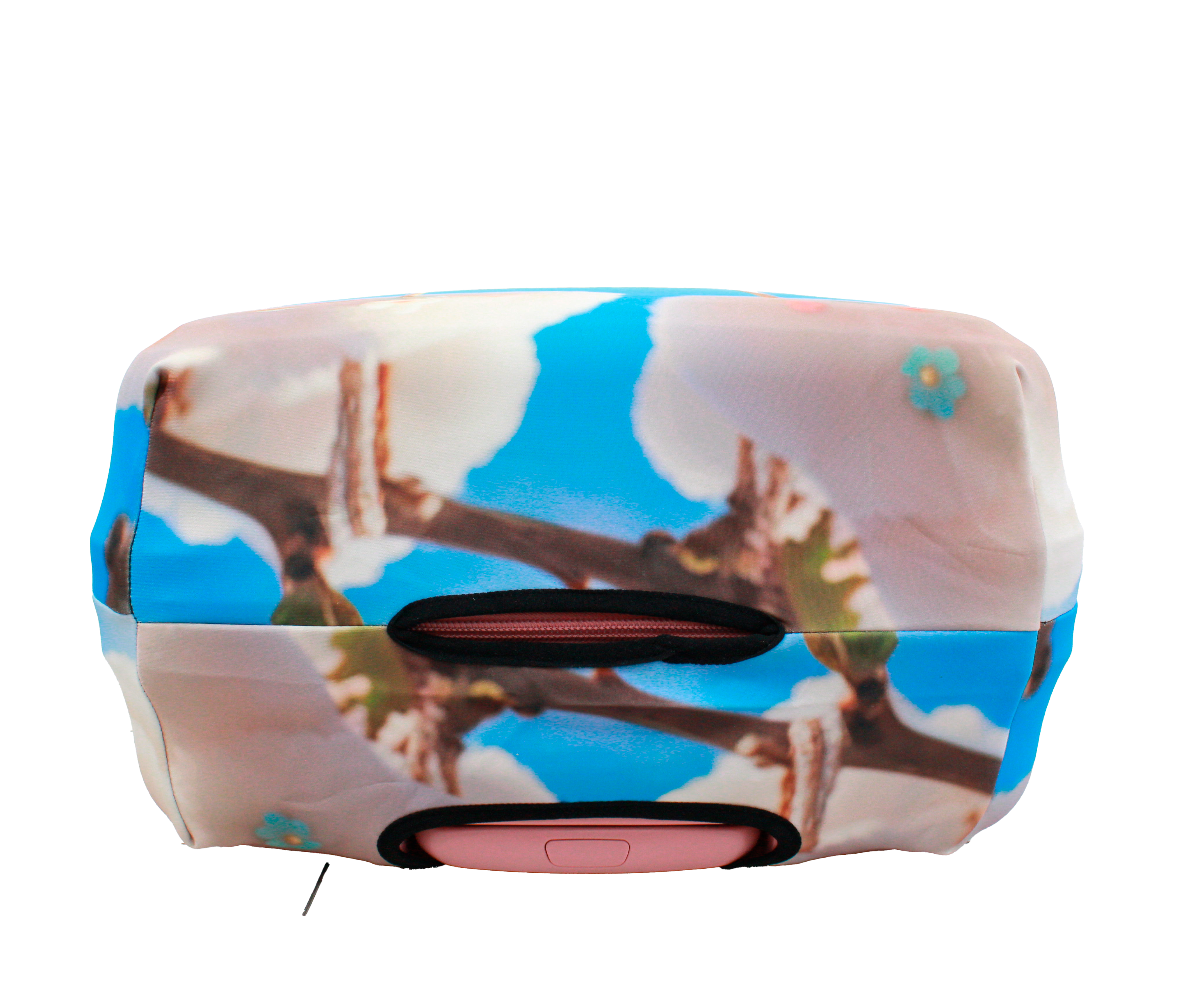 В чехле есть специальные проемы для колес чемодана, а также для вертикальной и горизонтальной ручки. Для надежной фиксации чехла на чемодане, он снизу оборудован молнией и застежкой на резинке.  Одевается он очень просто и быстро. Благодаря этому стильному аксессуару Ваш багаж будет смотреться ярко, а чемодан сохранит свой первозданный вид на долгое время.