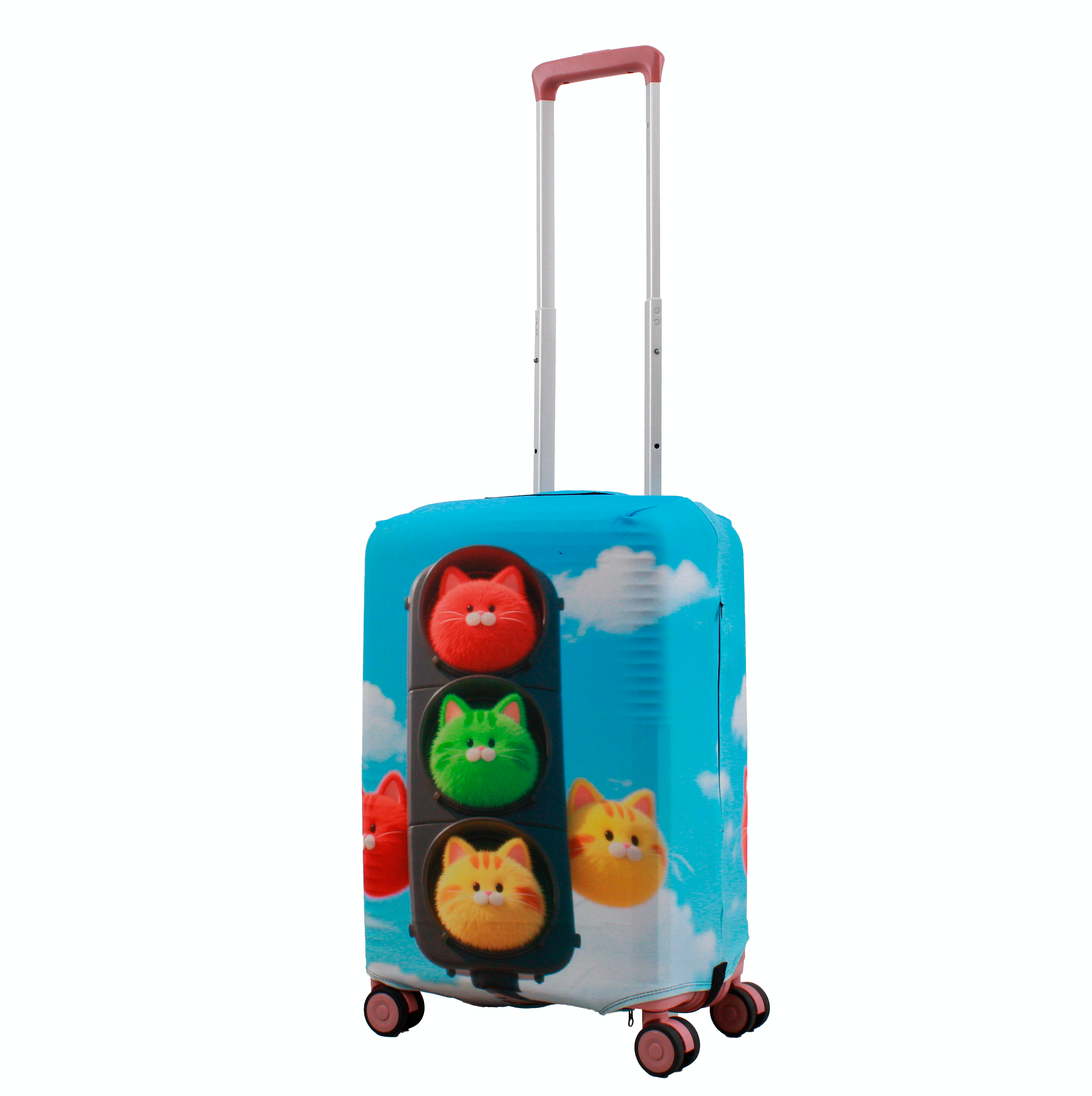 У чохлі є спеціальні прорізи для коліс валізи, а також для вертикальної та горизонтальної ручки. Для надійної фіксації чохла на валізі, він знизу обладнаний застібкою блискавкою і застібкою на резинці.  Одягається він дуже просто та швидко. Завдяки цьому стильному аксесуару Ваш багаж виглядатиме яскраво, а валіза збереже свій первозданний вигляд на довгий час.