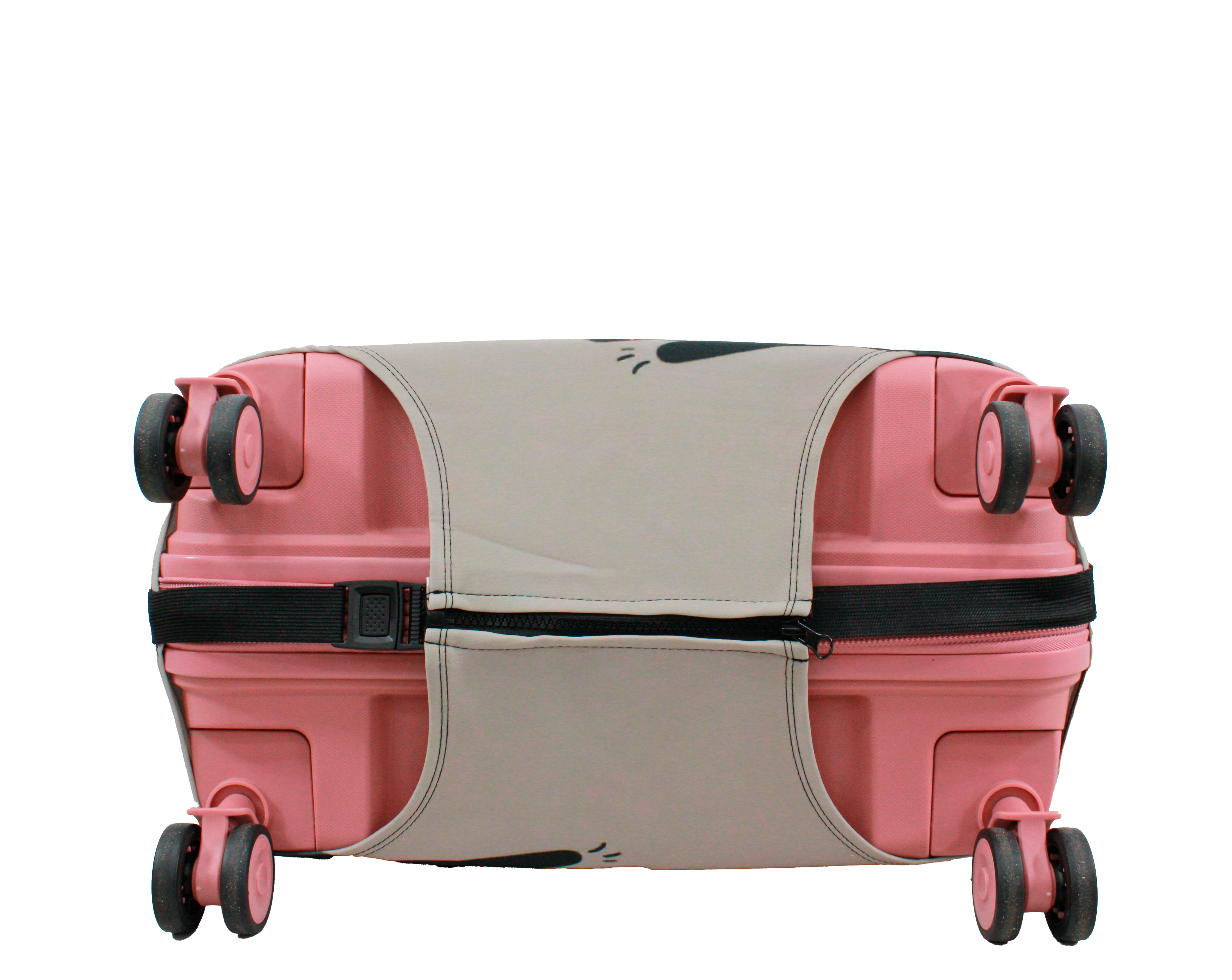У чохлі є спеціальні прорізи для коліс валізи, а також для вертикальної та горизонтальної ручки. Для надійної фіксації чохла на валізі, він знизу обладнаний застібкою блискавкою і застібкою на резинці.  Одягається він дуже просто та швидко. Завдяки цьому стильному аксесуару Ваш багаж виглядатиме яскраво, а валіза збереже свій первозданний вигляд на довгий час.