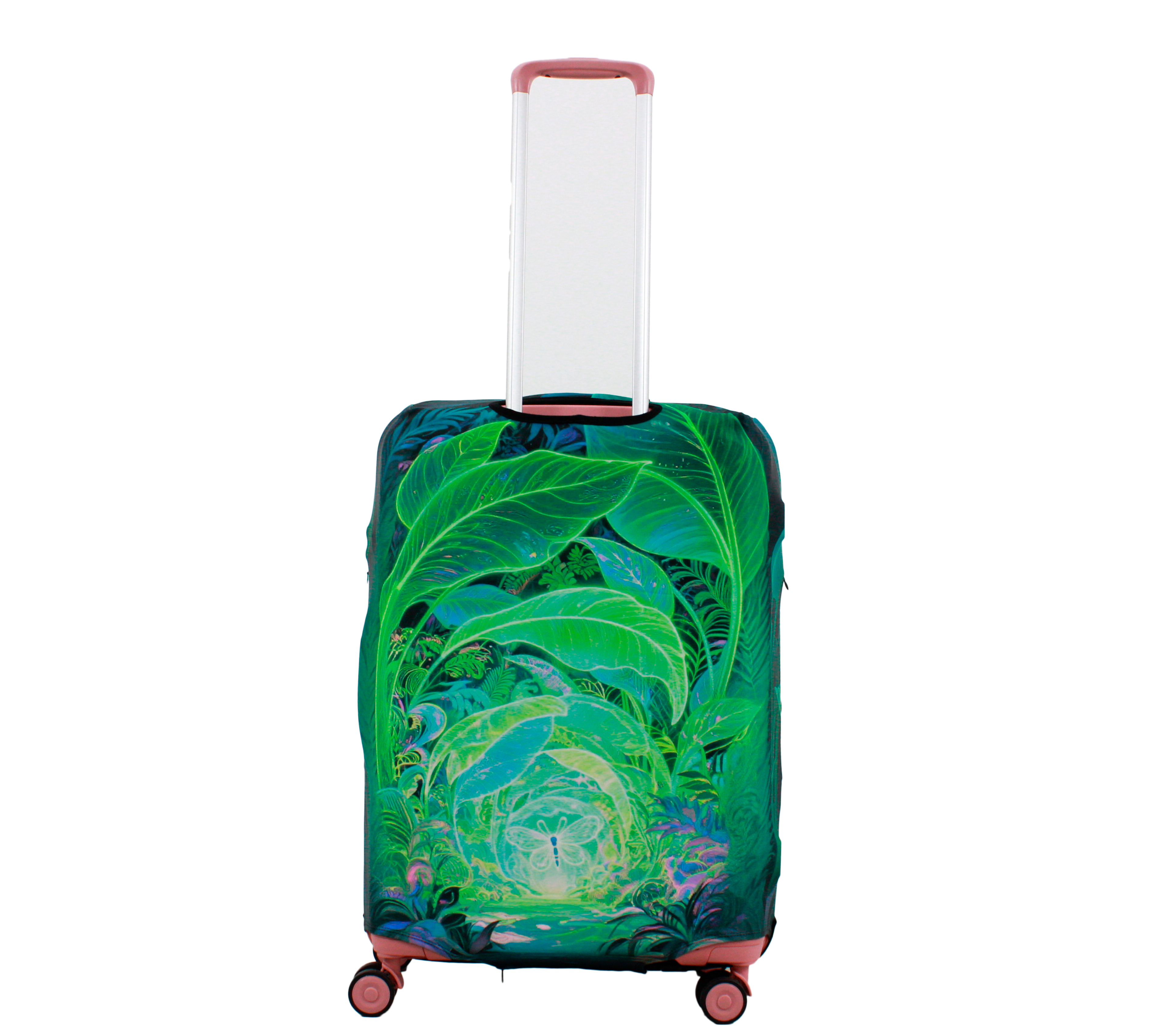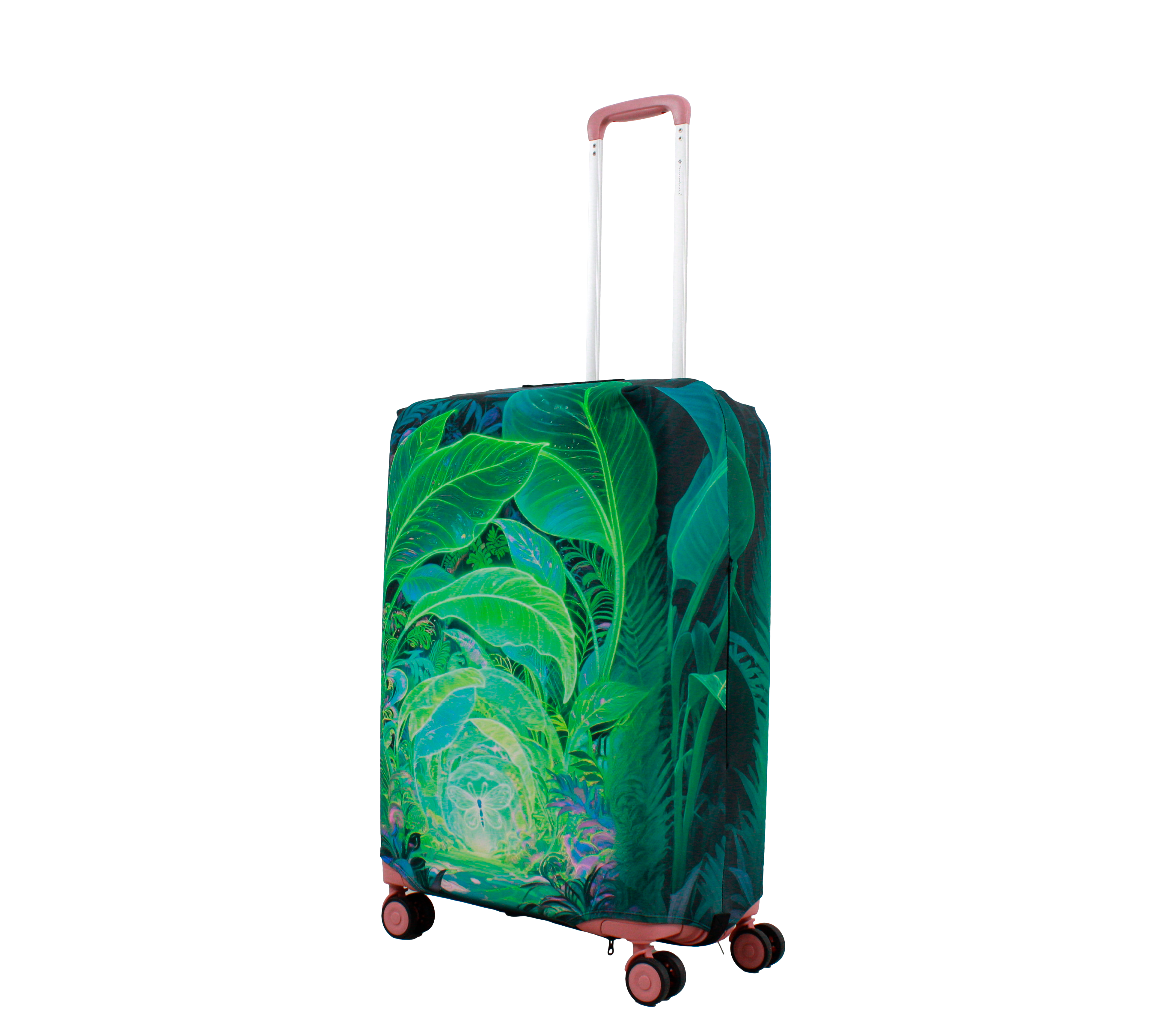 У чохлі є спеціальні прорізи для коліс валізи, а також для вертикальної та горизонтальної ручки. Для надійної фіксації чохла на валізі, він знизу обладнаний застібкою блискавкою і застібкою на резинці.  Одягається він дуже просто та швидко. Завдяки цьому стильному аксесуару Ваш багаж виглядатиме яскраво, а валіза збереже свій первозданний вигляд на довгий час.