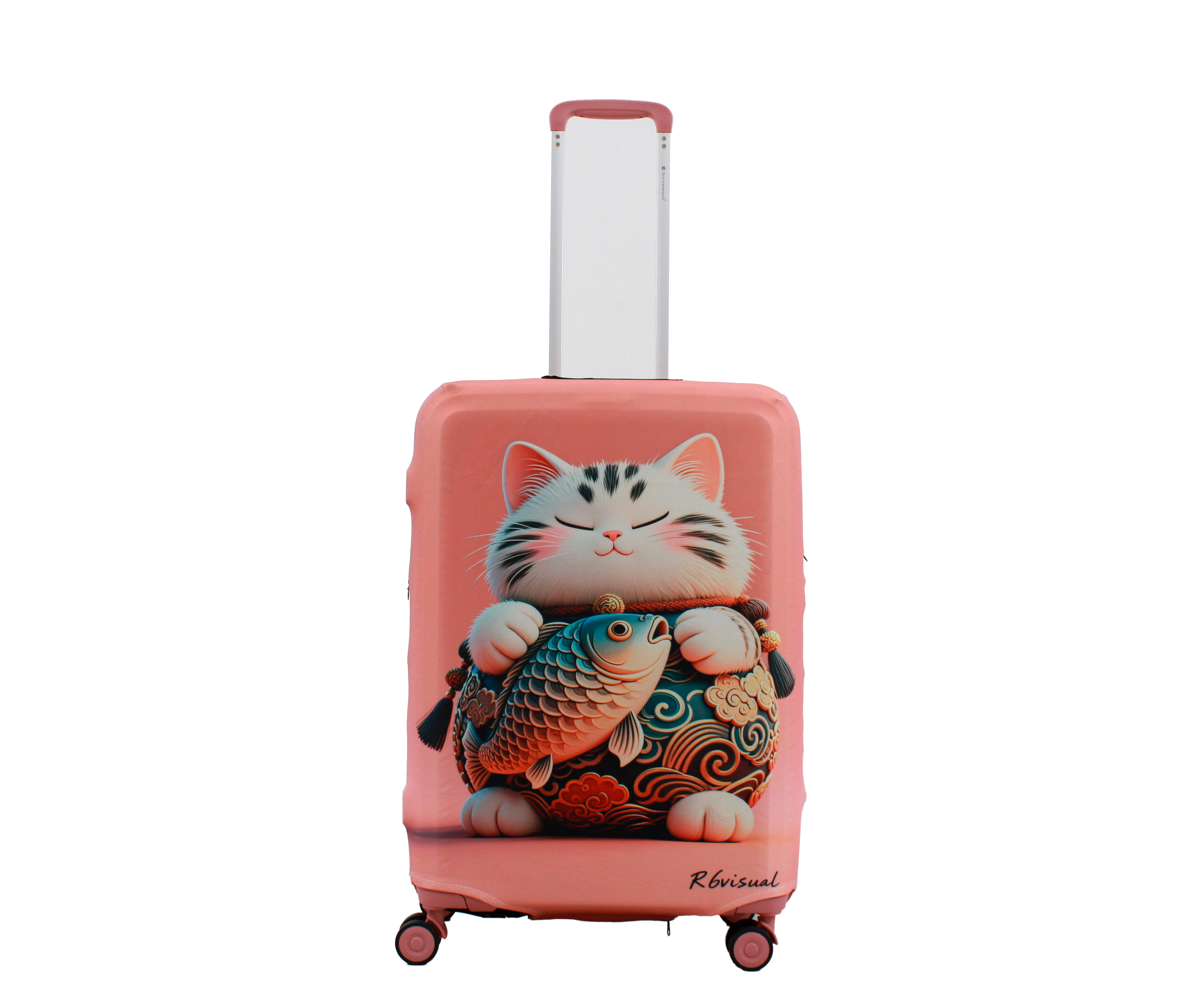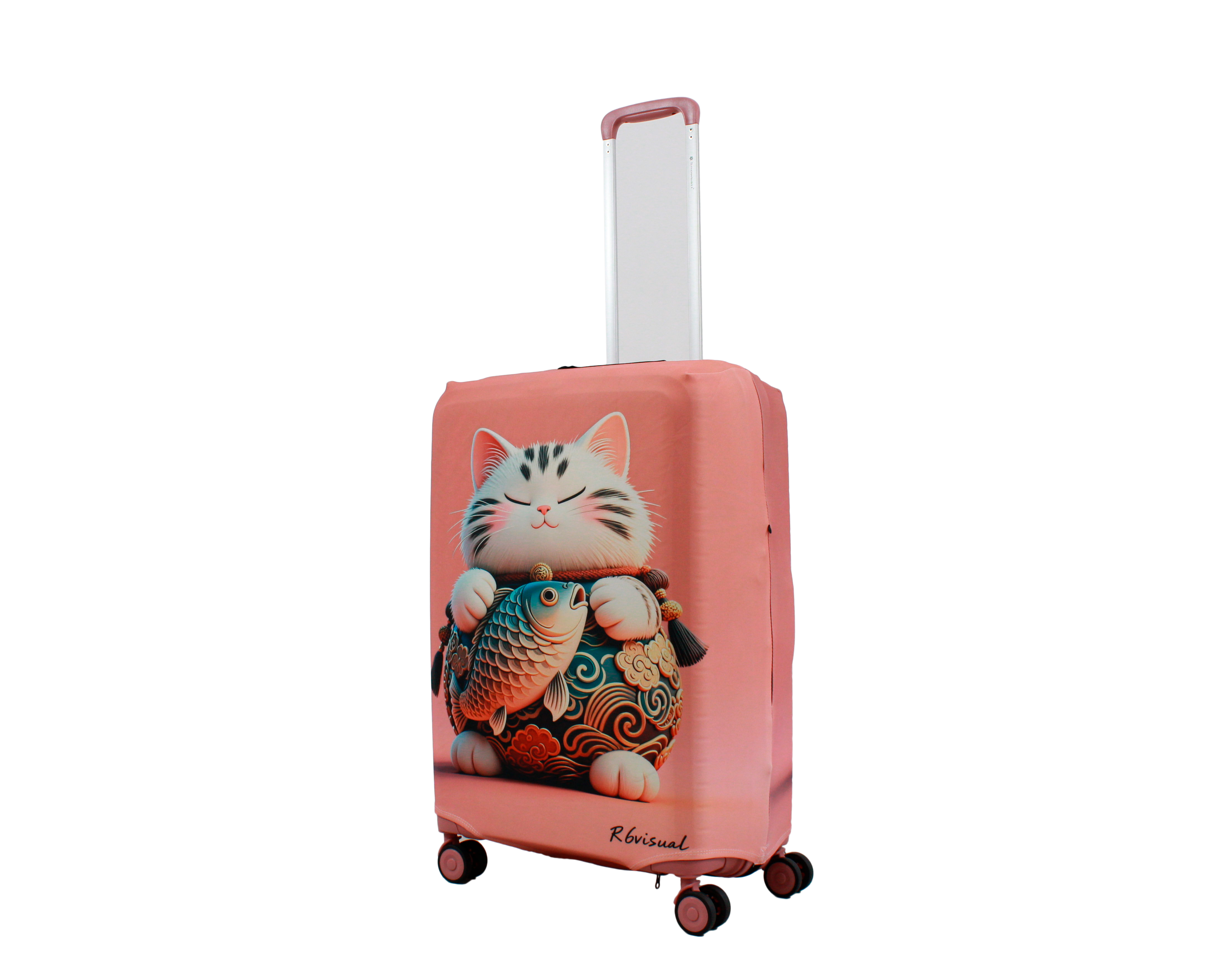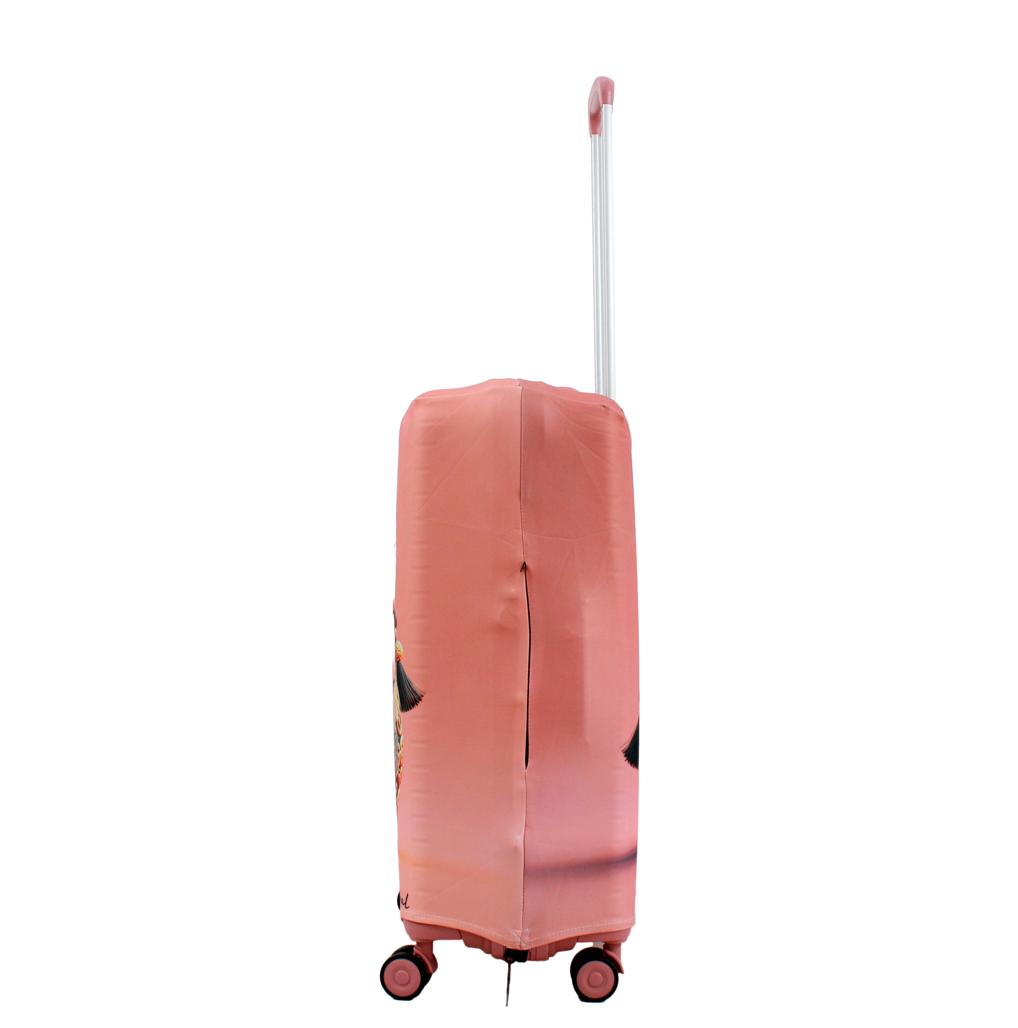 У чохлі є спеціальні прорізи для коліс валізи, а також для вертикальної та горизонтальної ручки. Для надійної фіксації чохла на валізі, він знизу обладнаний застібкою блискавкою і застібкою на резинці. Одягається він дуже просто та швидко. Завдяки цьому стильному аксесуару Ваш багаж виглядатиме яскраво, а валіза збереже свій первозданний вигляд на довгий час.
