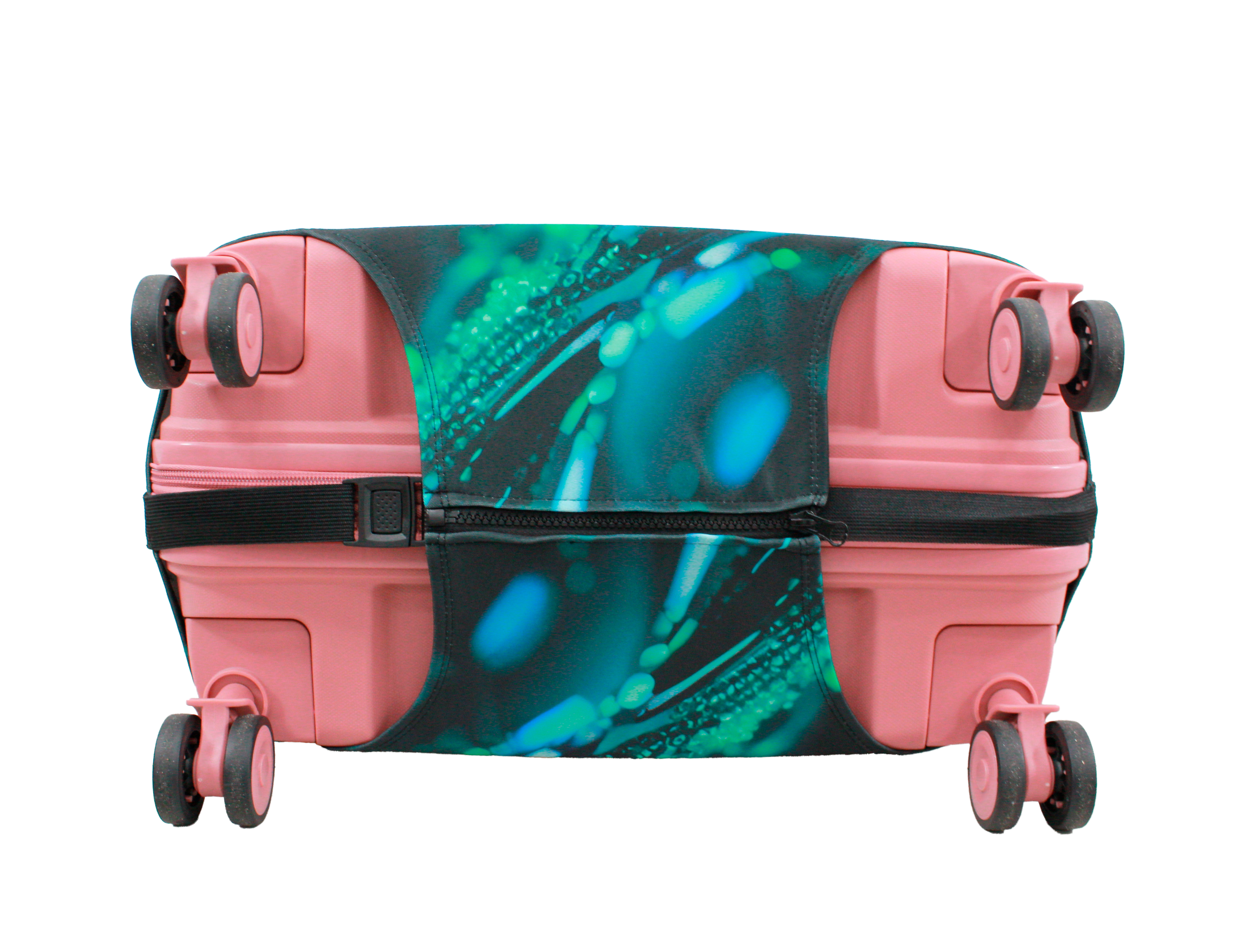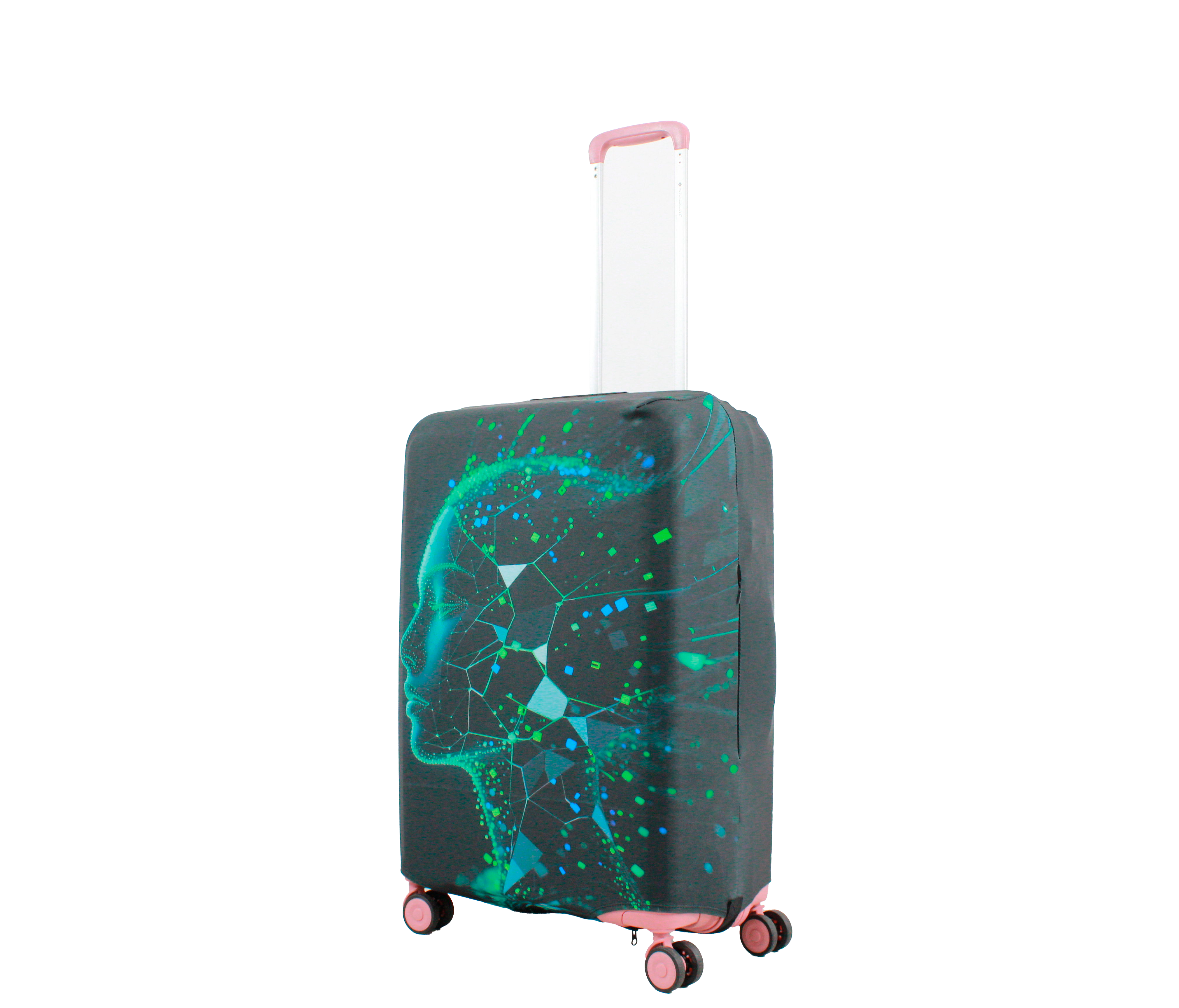 У чохлі є спеціальні прорізи для коліс валізи, а також для вертикальної та горизонтальної ручки. Для надійної фіксації чохла на валізі, він знизу обладнаний застібкою блискавкою і застібкою на резинці.  Одягається він дуже просто та швидко. Завдяки цьому стильному аксесуару Ваш багаж виглядатиме яскраво, а валіза збереже свій первозданний вигляд на довгий час.