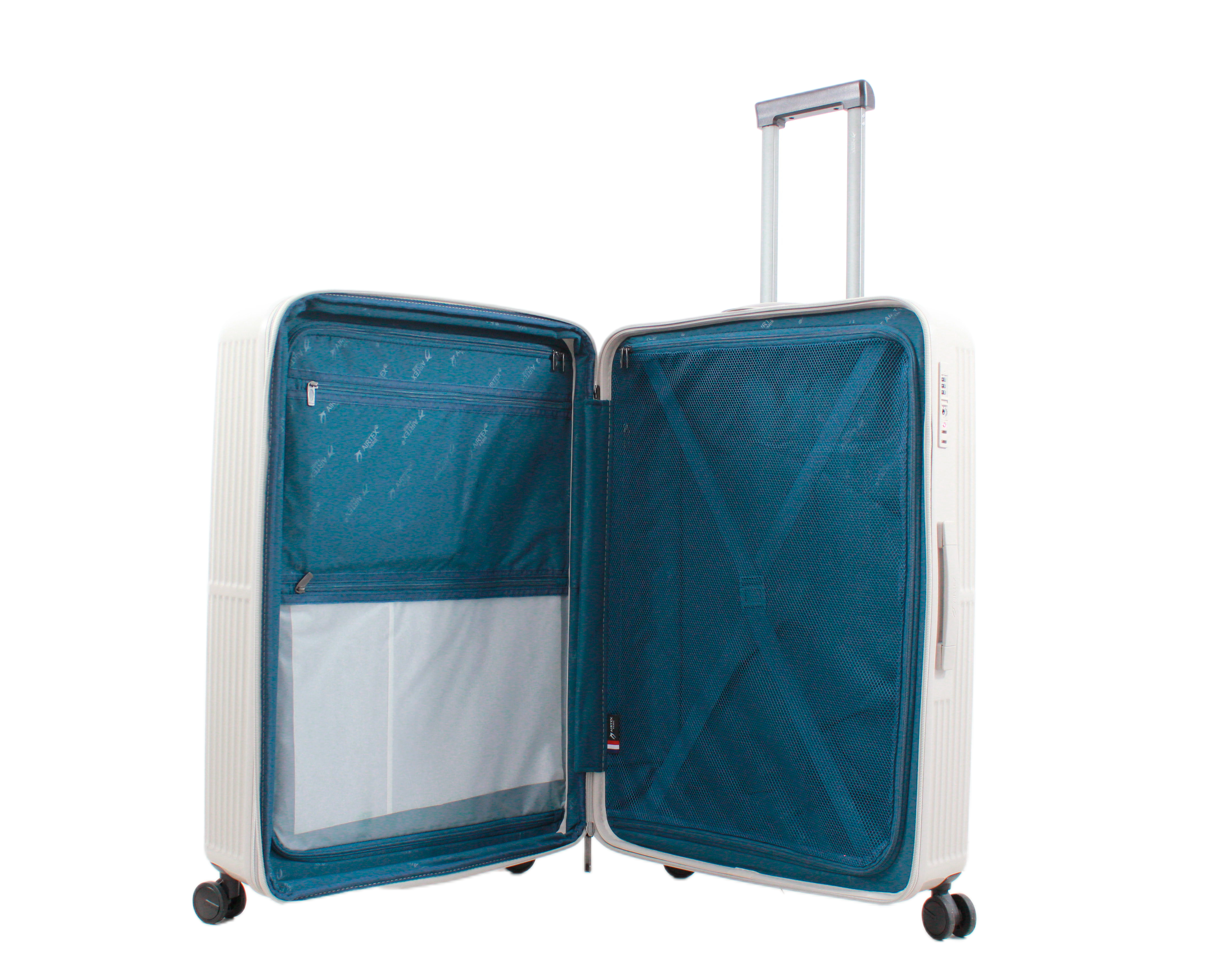 Чемоданы Airtex  защищены встроенным кодовым замком TSA LOCK™ с функцией таможенного осмотра обеспечит неприкосновенность вашего багажа от посторонних лиц, а также молнией антивор фирмы YKK, чтобы предотвратить несанкционированный доступ. Для удобства переноски, особенно по лестницам, каждый из них оснащен одной или двумя прочными ручками. Алюминиевая выдвижная ручка имеет несколько положений фиксации и поможет вам настроить высоту на свой вкус. Сверху и сбоку чемодана расположены ручки GEL для переноски его в вертикальном или горизонтальном положениях в размерах L і M, а в размере S только сверху. В середине чемодана имеются 2 отделения, одно закрывается на молнию, второе имеет ремни для фиксации багажа.