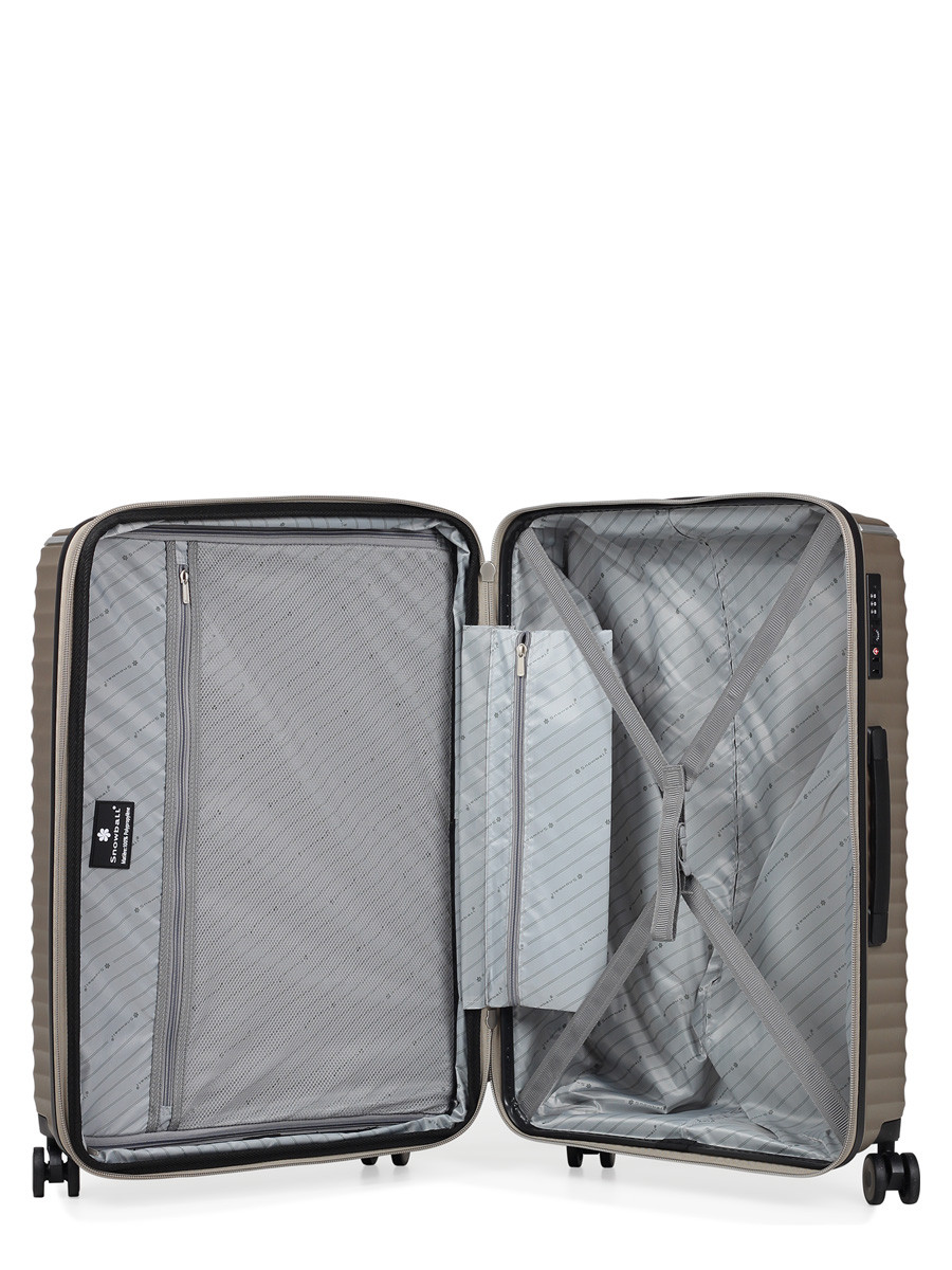 SNOWBALL, яка стане вашим відмінним супутником на подорожах та ділових зустрічах. Виконана з 100% поліпропілену, цей матеріал відзначається високою міцністю та здатністю витримувати удари. Велика валіза має об’єм 108 літрів з можливістю збільшення до 126 літрів, що робить її ідеальним рішенням для подорожей терміном від 2 до 3 тижнів. Оснащена сучасною системою легкого переміщення, валіза обладнана м’якими поліуретановими колесами на металевих підшипниках, які обертаються на 360 градусів. Це забезпечує чудову маневреність навіть під час повного завантаження. Висувна алюмінієва телескопічна ручка з кількома положеннями фіксації робить перевезення валізи максимально комфортним. Тризначний TSA кодовий замок з функцією митного огляду разом із протизламною блискавкою забезпечать безпеку ваших речей. Для зручності переміщення валіза має дві м'які ручки GEL: одну зверху та одну збоку у розмірах L і M, а також зверху в розмірі S. А для можливості вертикального зберігання валізи розміри L і M оснащені бічними ніжками, що надає додаткову зручність. Внутрішній простір організовано продумано: один відсік обладнаний ременями для фіксації речей, а інший закривається перегородкою на замку. Додаткова сітчаста кишеня на блискавці доповнює внутрішнє облаштування.