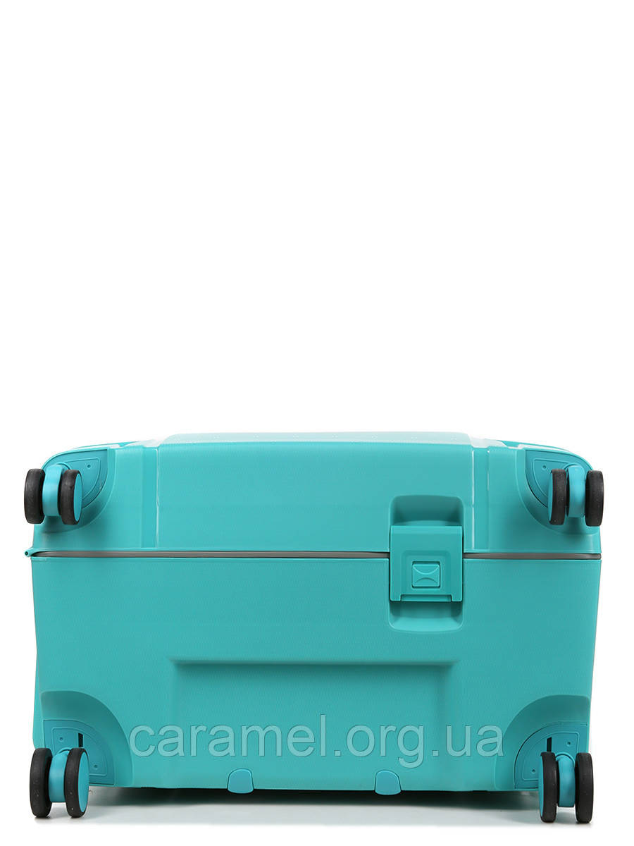 Оригинальный дизайн чемодана подчеркивается нестандартным способом закрытия: вместо традиционной молнии использованы три застежки-клипсы, расположенные по бокам, сверху и снизу чемодана.