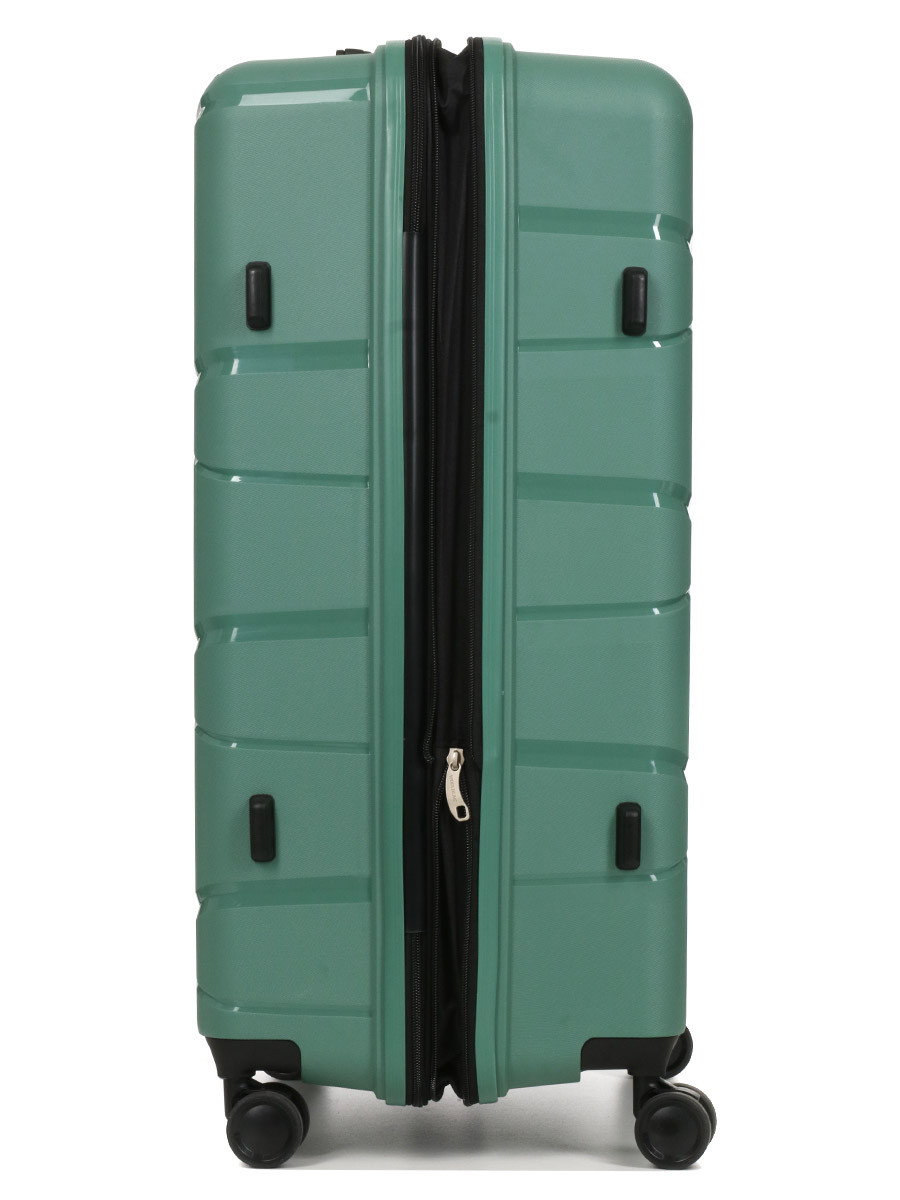 Велика валіза Worldline має об'єм 102 літри, з можливістю розширення до 115 літрів, що робить її ідеальною для тривалих поїздок або сімейних відпусток на 2-3 тижні. Виготовлені із 100% поліпропілену, ці валізи відзначаються своєю гнучкістю і стійкістю до механічних пошкоджень, що підтверджено численними тестами, проведеними у Франції. Вони особливо підходять для авіаційних поїздок, де багаж може піддаватися ризику пошкоджень.