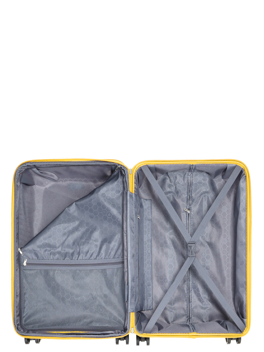 ☑️ Усередині – товста нейлонова підкладка. Валіза має два окремих відсіки: один із фіксуючими лямками, а інший на блискавці, а також одну кишеню з сітки для зручності.