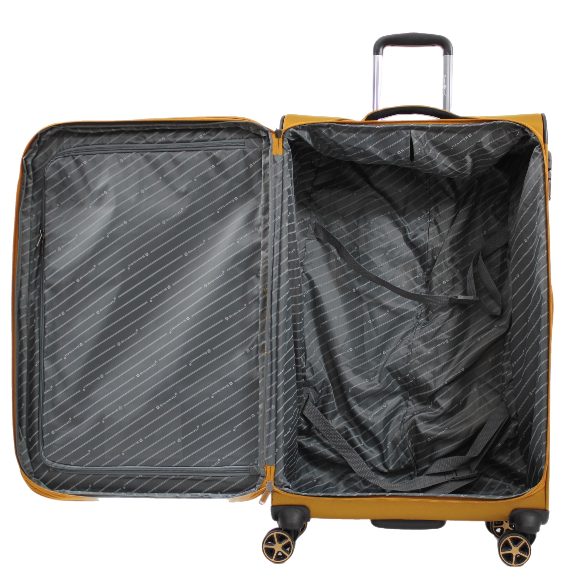 В чемодане Snowball Tupiza вы найдете хорошо организованное внутреннее пространство: узкое отделение с гибкой перегородкой на молнии подходит для самых деликатных предметов, а глубокое отделение предназначено для курток, брюк и других больших вещей. Чтобы избежать заломов, ваше белье может быть надежно зафиксировано с помощью четырех регулируемых ремней и двух эластичных ремней-бабочек (модель салонного чемодана имеет только четыре регулируемых ремня). А для быстрого доступа к необходимым вещам вы можете воспользоваться двумя передними карманами на молнии. Это действительно удобное и функциональное решение для хранения ваших вещей.