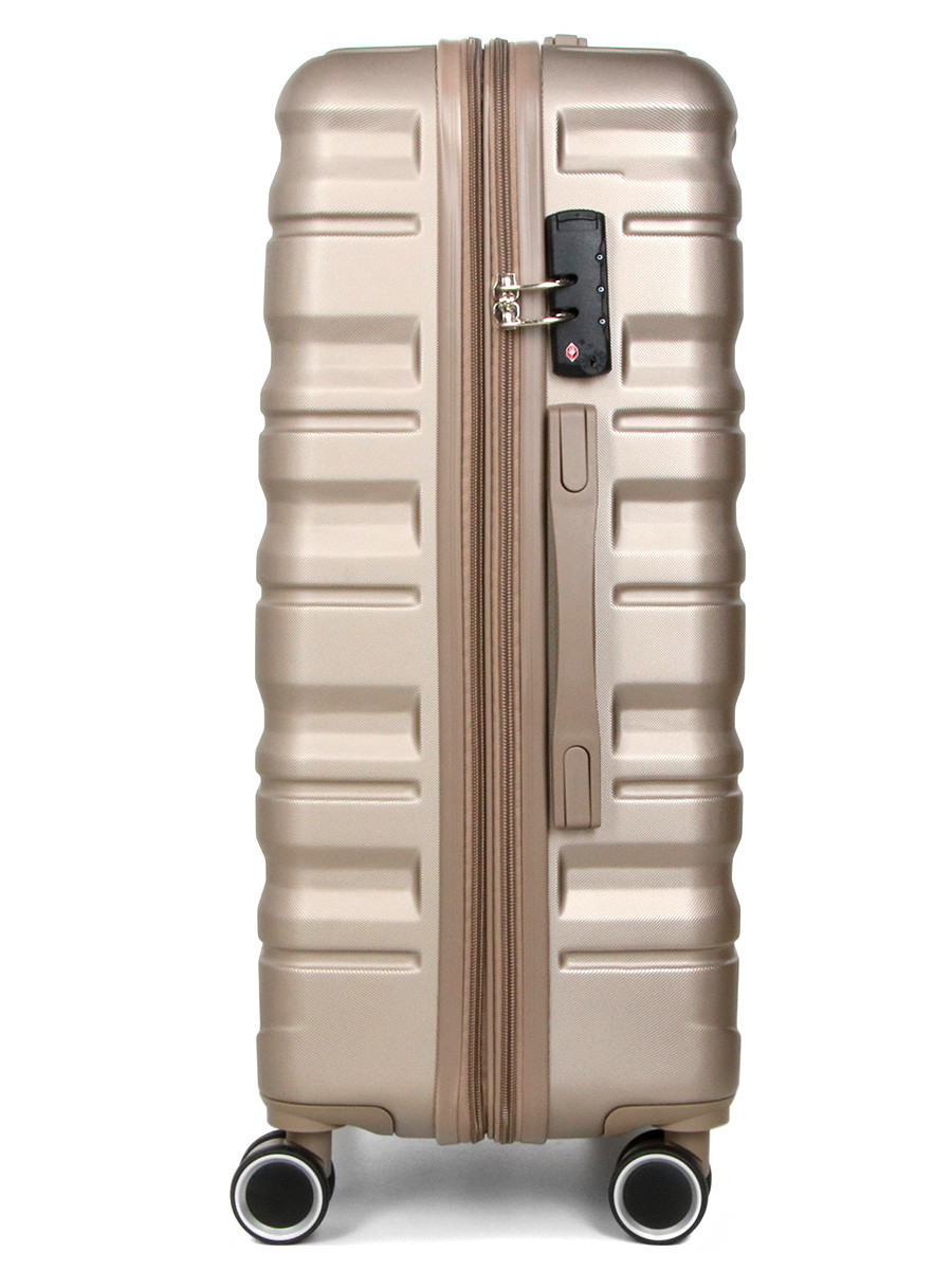 Середня валіза розміру M: 65.5x43x26(+5) см- Розмір корпусу: 60х42х26(+5) см (без виступаючих елементів: коліс, упорів і ручок)