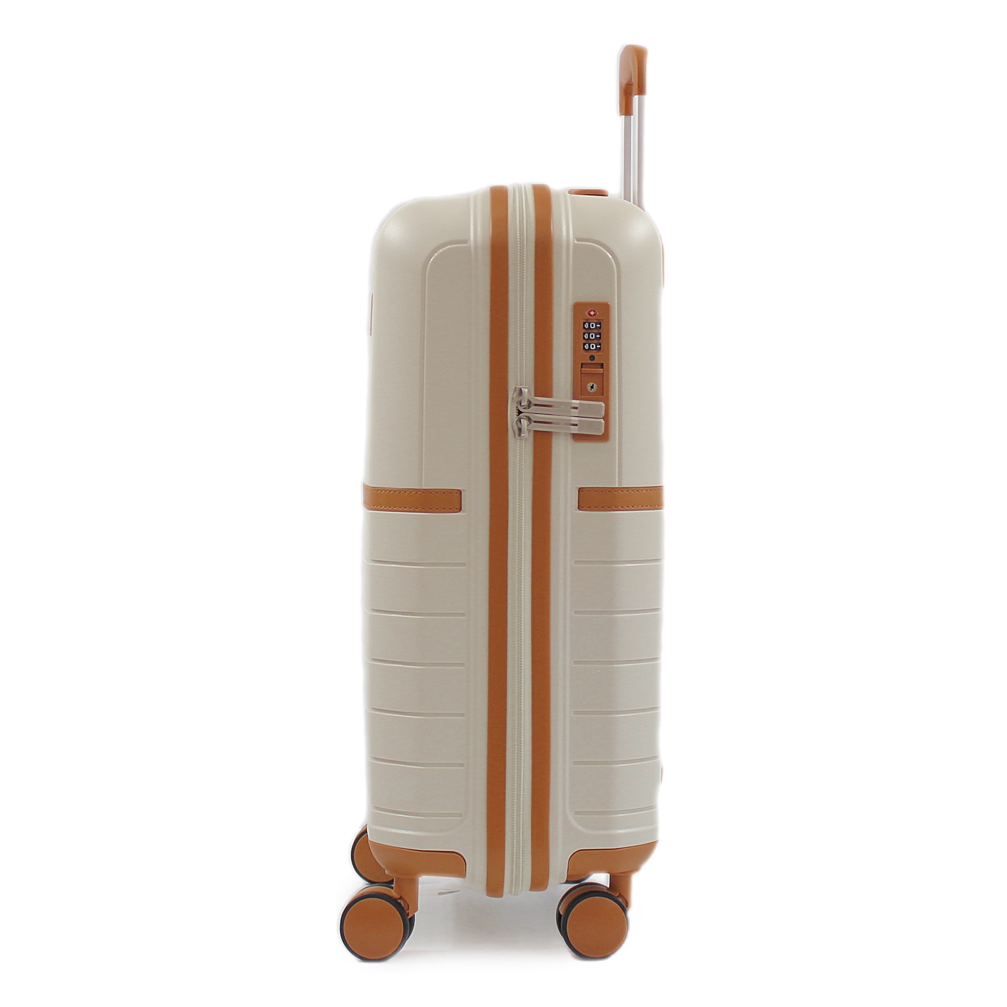 Ця валіза виготовлена з 100% поліпропілену, що забезпечує їй надзвичайну міцність і стійкість до зношування. Вона обладнана алюмінієвою телескопічною виїзною ручкою з кількома позиціями фіксації. Чотири подвійні колеса обертаються на 360°, що дозволяє досконало маневрувати навіть при повному завантаженні. Блискавка анті злодій та замок TSA із функцією митного огляду забезпечують надійний захист Вашого багажу. Для ще більшого комфорту валіза має два зручні прорезинені ручки GEL: одну зверху і одну з боків у розмірах L і M, а також одну зверху у розмірі S.