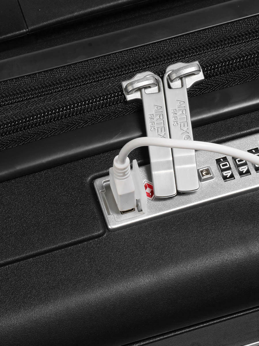 Мала валіза оснащена зовнішнім відділенням для ноутбука, що включає декілька кишень та USB порт для зручності використання.