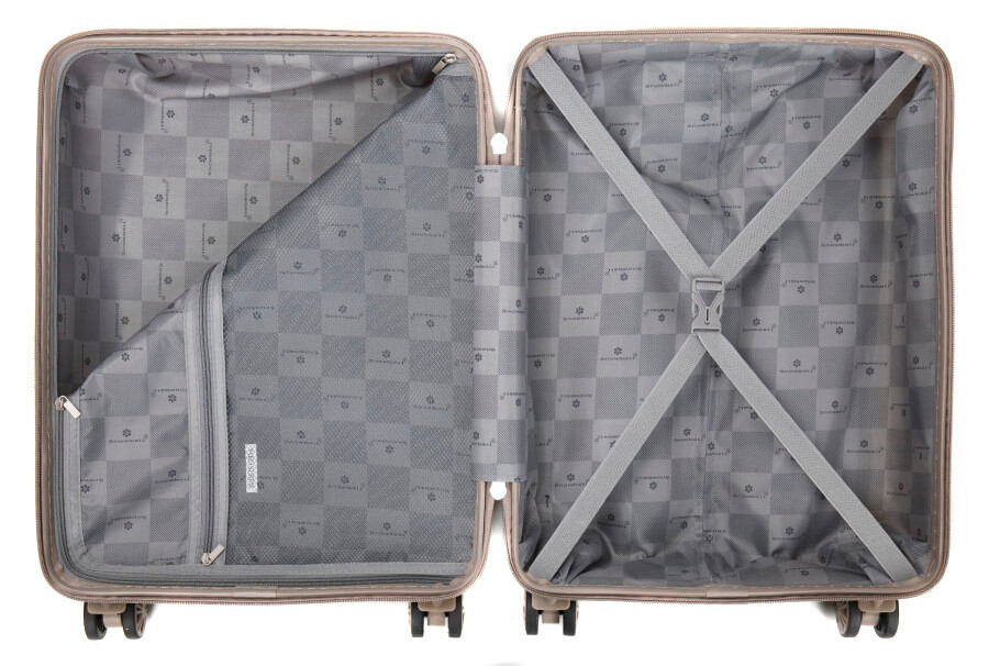 Для ще більшого комфорту, зверху та збоку валіза обладнана двома ручками з м'якого матеріалу GEL у розмірах L, M та S, а також маленькою ручкою XS для легкого перенесення. Валіза також оснащена чотирма бічними ніжками для зручності, дозволяючи розмістити її в горизонтальному положенні. Продумане внутрішнє простір дозволить вам організувати ваші речі максимально ефективно: у ньому є лоток з надійними ременями для фіксації, ручка зі замком та додаткова сітчаста кишеня на блискавці. Ще однією характерною рисою є фурнітура, підібрана в кольорі самого корпусу валізи.