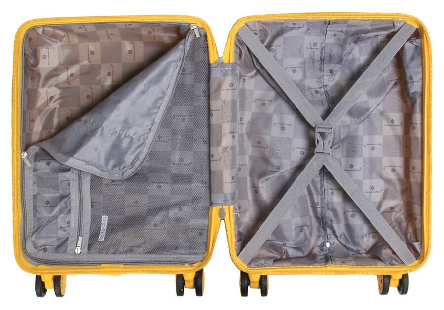 ☑️ Чотири ніжки для зручного горизонтального розміщення валізи;