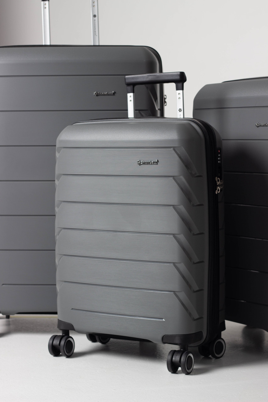 Чемодан ручная кладь S полипропилен серый 55х36х20+5/43л/2.9кг/Snowbal