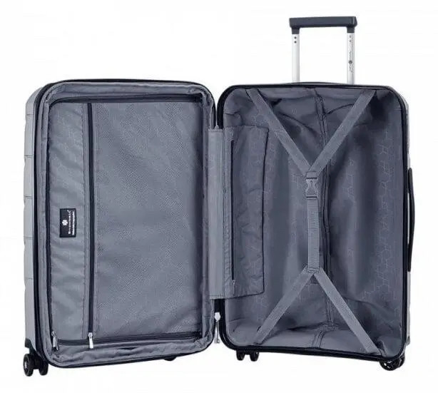 Этот чемодан также оснащен внутренними ремнями безопасности и большими карманами на молнии, что делает организацию вещей в путешествиях максимально удобной. Дополнительно наличие верхней и боковой ручек обеспечивает легкость транспортировки, что особенно удобно при перемещении в толпе.
