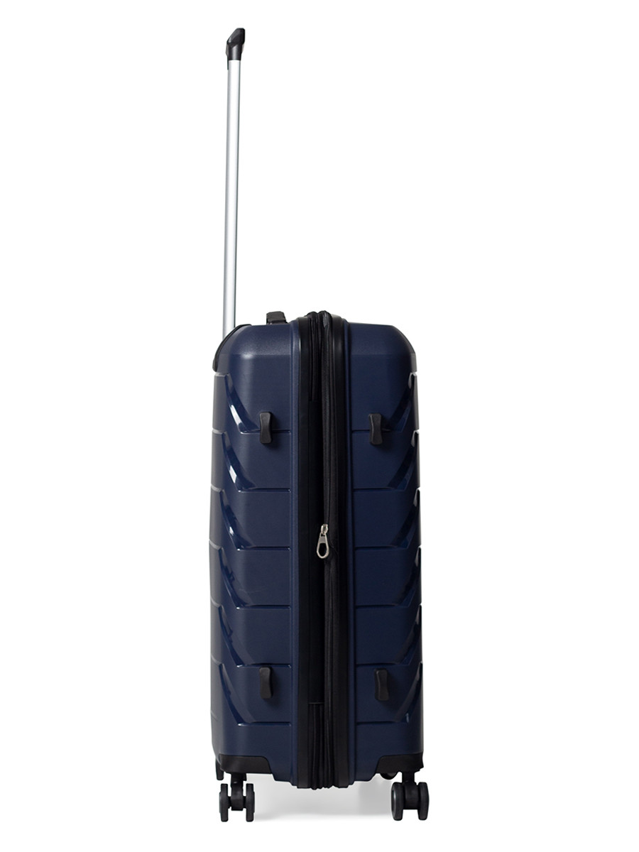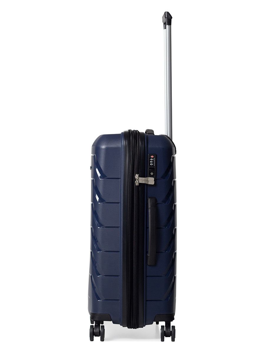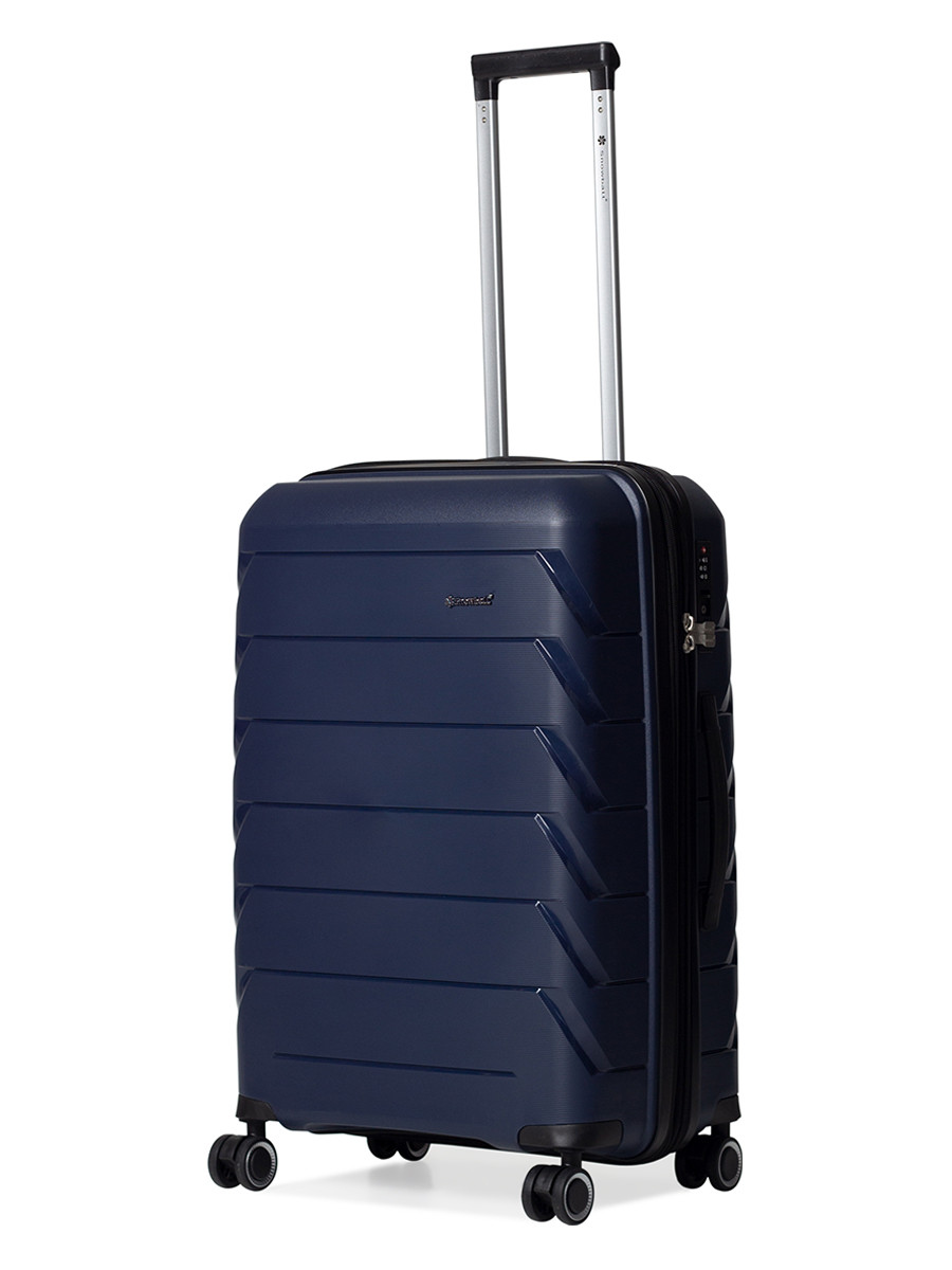Средний чемодан M: 66x44x25,5(+5) см- Размер корпуса: 59x43x26(+5) см (без выступающих частей: колес, упоров и ручек)