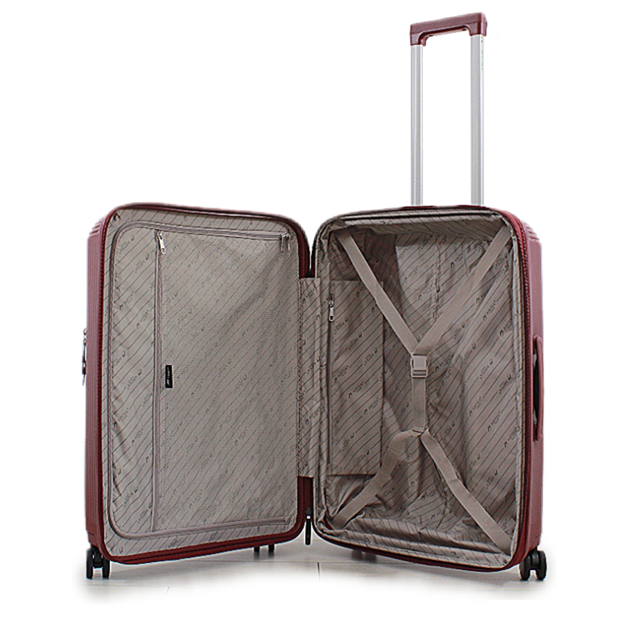 Внутри чемодана есть два отделения: одно из которых закрывается на молнию, а второе оснащено ремнями для надежного крепления багажа. Это обеспечивает максимальный комфорт, функциональность и качество в процессе вашего путешествия. Для хранения мелочей, аксессуаров и личных вещей предусмотрены два кармана на молнии, один из которых имеет сетчатую структуру. Также присутствуют два регулируемых ремня для аккуратного размещения сложного белья во время транспортировки.