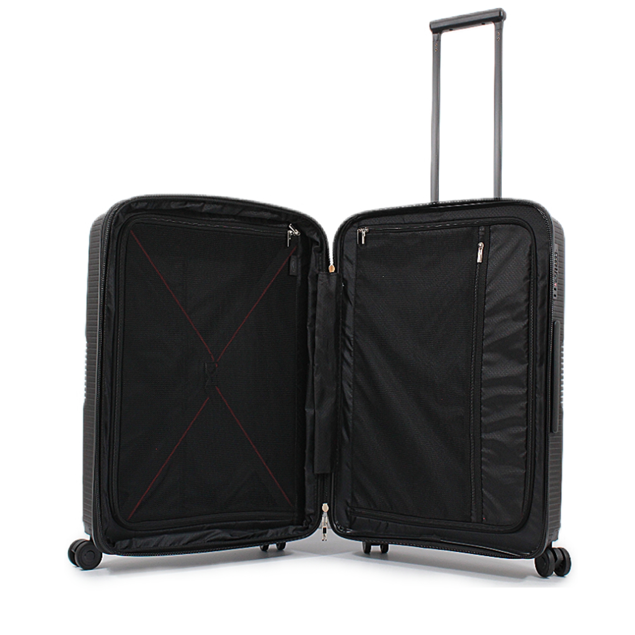 Большой чемодан L: 77x53x32.5(+5) см- Размер корпуса: 71х50х32.5(+5) см (без выступающих элементов: колес, ножек и ручек)
