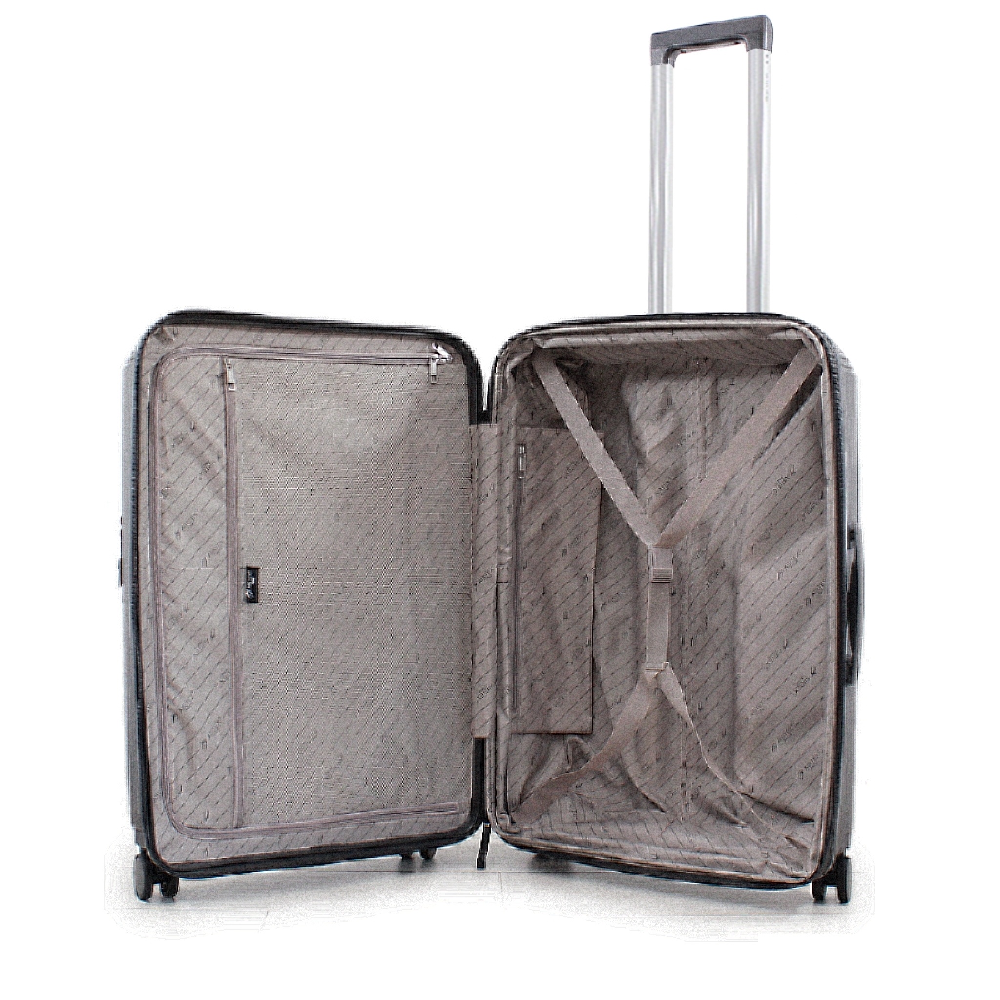 Внутри чемодана расположены два отделения: одно закрывается на молнию, другое оборудовано ремнями для надежного крепления багажа. Эта продуманная внутренняя планировка гарантирует функциональность и комфорт во время путешествий. Для организации мелочей и аксессуаров есть два кармана на молнии, один из которых сетчатый, чтобы обеспечить удобство. Два регулируемых ремня помогут эффективно упаковать сложенное белье во время транспортировки.