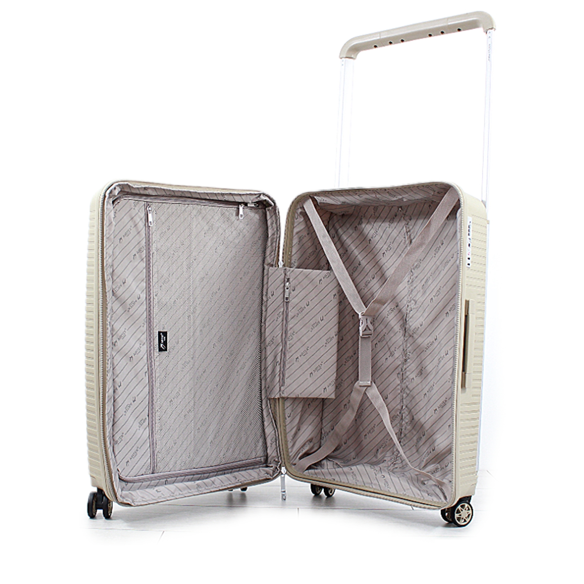 Валізи, створені французьким брендом AIRTEX, виготовляються з надзвичайно міцного матеріалу – 100% поліпропілену. Цей матеріал є одним з найпоширеніших у виробництві високоякісних валіз, оскільки вирізняється відмінною стійкістю до механічних пошкоджень, що підтверджено численними тестами, виконаними у Франції. Ідеальні для авіаперельотів, ці валізи зазнають менше ушкоджень під час транспортування. Всі моделі, незалежно від розміру, мають можливість розширення (+5) см. Збільшена застібка-блискавка проти злодіїв та кодовий замок TSA LOCK™ забезпечують зручність доступу до вмісту та надійний захист ваших речей. Чотири незалежних поліуретанові колеса з підшипниками забезпечують обертання на 360° без шуму. Алюмінієва висувна ручка з декількома фіксованими положеннями дозволяє налаштувати висоту ручки відповідно до ваших побажань. Для зручного переміщення валіза має дві прогумовані ручки GEL, що забезпечують комфорт під час перенесення. Матова шорстка текстура на зовнішньому покритті допомагає зменшити ризик подряпин. Всередині валізи розташовані два відділення: одне закривається на блискавку, інше оснащене ременями для фіксації багажу. Ці особливості разом створюють ідеальні умови для зручних подорожей. Для дрібниць і особистих речей передбачено дві кишені на блискавці, одна з яких сітчаста. Крім того, для зручності транспортування складеної білизни використано два регульовані ремені.