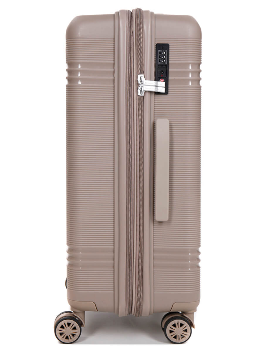 Стильні та практичні валізи французького бренду SNOWBALL стануть вірними супутниками під час вашої подорожі або ділової поїздки. Ця валіза виготовлена з 100% поліпропілену — надійного та ударостійкого матеріалу. Середня модель має об'єм 66 літрів, з можливістю розширення до 79 літрів, що ідеально підходить для подорожей тривалістю 1-2 тижні. Валізи оснащені інноваційною системою легкого переміщення завдяки м'яким поліуретановим колесам на металевих підшипниках, які обертаються на 360°. З цією системою валізи легко котити та маневрувати, навіть якщо вони повністю завантажені. Висувна алюмінієва телескопічна ручка має кілька фіксованих положень для вашого комфорту. Тризначний кодовий замок TSA, який дозволяє митницям перевіряти валізу без її пошкодження, та посилена блискавка №10 гарантують безпеку ваших речей. Для зручності перенесення валіза обладнана двома прорезиненими ручками GEL: однією зверху, а іншою збоку (в різних розмірах для зручного захоплення). Валіза також має бічні ніжки, що забезпечують її стійкість в горизонтальному положенні. Інтер'єр продуманий для оптимального зберігання ваших речей: один відсік оснащений надійними ременями для фіксації, а інший має перегородку на блискавці. Додаткова внутрішня сітчаста кишеня на блискавці дозволить вам організувати вміст валізи. Важливою особливістю цієї моделі є естетична фурнітура, яка відповідає кольору валізи.