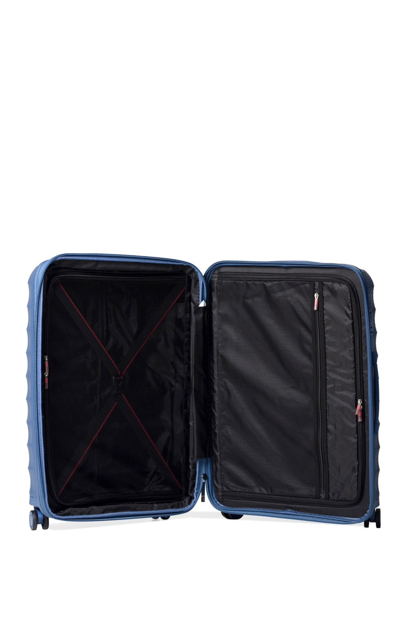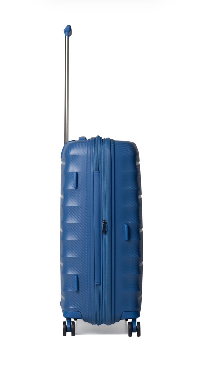 Средний чемодан имеет объем 75 л, с возможностью расширения до 89 л, что делает его идеальным выбором для путешествий продолжительностью от 1 до 2 недель.