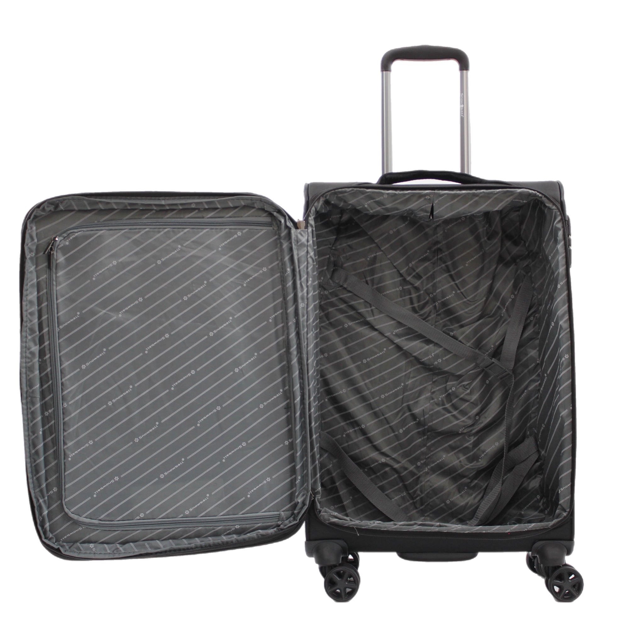 Чемодан Snowball Tupiza имеет специализированное узкое отделение с гибкой перегородкой на молнии, предназначенное для самых деликатных вещей, а также глубокое отделение для курток, брюк, туалетных сумочек или других объемных аксессуаров. Чтобы избежать морщин, белье может быть зафиксировано на месте с помощью четырех регулируемых ремней и двух эластичных ремней-бабочек (в ручном чемодане только четыре регулируемых ремня). Если вам понадобится еще больше места для последних штрихов, вы сможете воспользоваться одним из двух удобных передних карманов на молнии. Это действительно продуманное внутреннее устройство для организации ваших вещей.