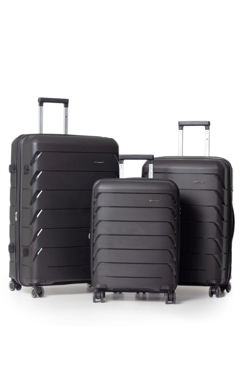 SNOWBALL створені з високоякісного поліпропілену, що забезпечує їх надзвичайну стійкість до ударів, подряпин та інших механічних пошкоджень. Це матеріал, який не боїться зносу і деформації, витримує екстремальні температури та не тріскається! Комплект включає три валізи: маленька ручна поклажа S-55 см, а також дві більші валізи — розміру M-66 см і L-76 см. Усі три моделі мають функцію розширення об'єму (+5 см).