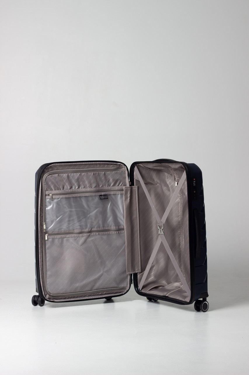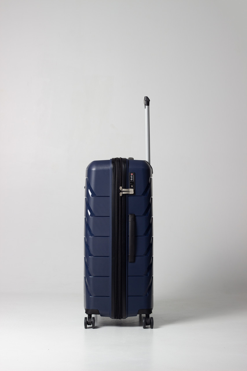 Велика валіза L: 76x50,5x29(+5) см- Розмір корпусу: 69х49х29(+5) см (без виступаючих елементів: коліщаток, упорів і ручок)