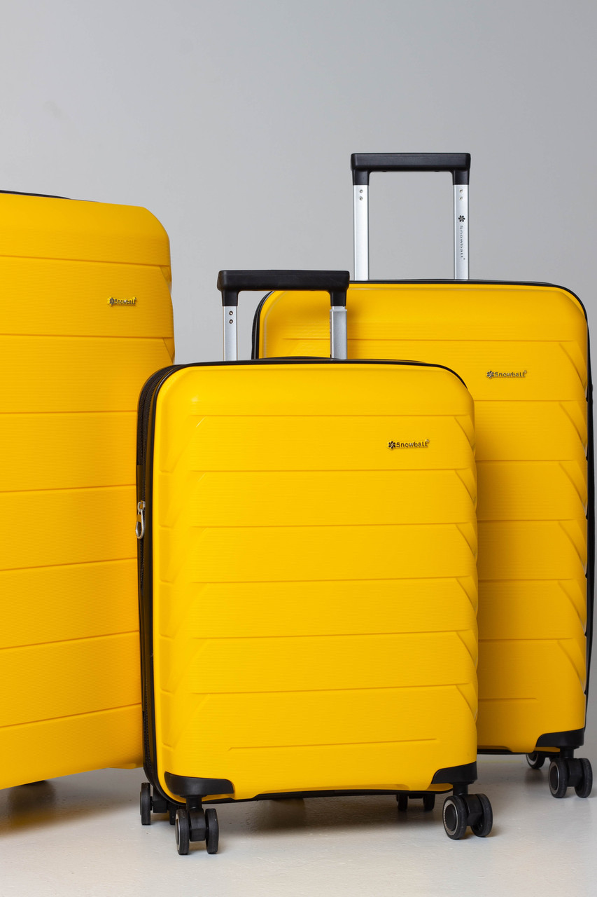 Валізи французького бренду SNOWBALL виготовлені з 100% поліпропілену, який вирізняється надзвичайною стійкістю до ударів, подряпин та інших механічних впливів. Цей матеріал витримує знос, деформацію, а також крайні температури без ризику тріщин. Набір складається з трьох валіз: компактна ручна поклажа висотою S-55 см та дві в великому форматі — M-66 см і L-76 см. Усі варіанти мають можливість розширення обсягу на додаткові 5 см.