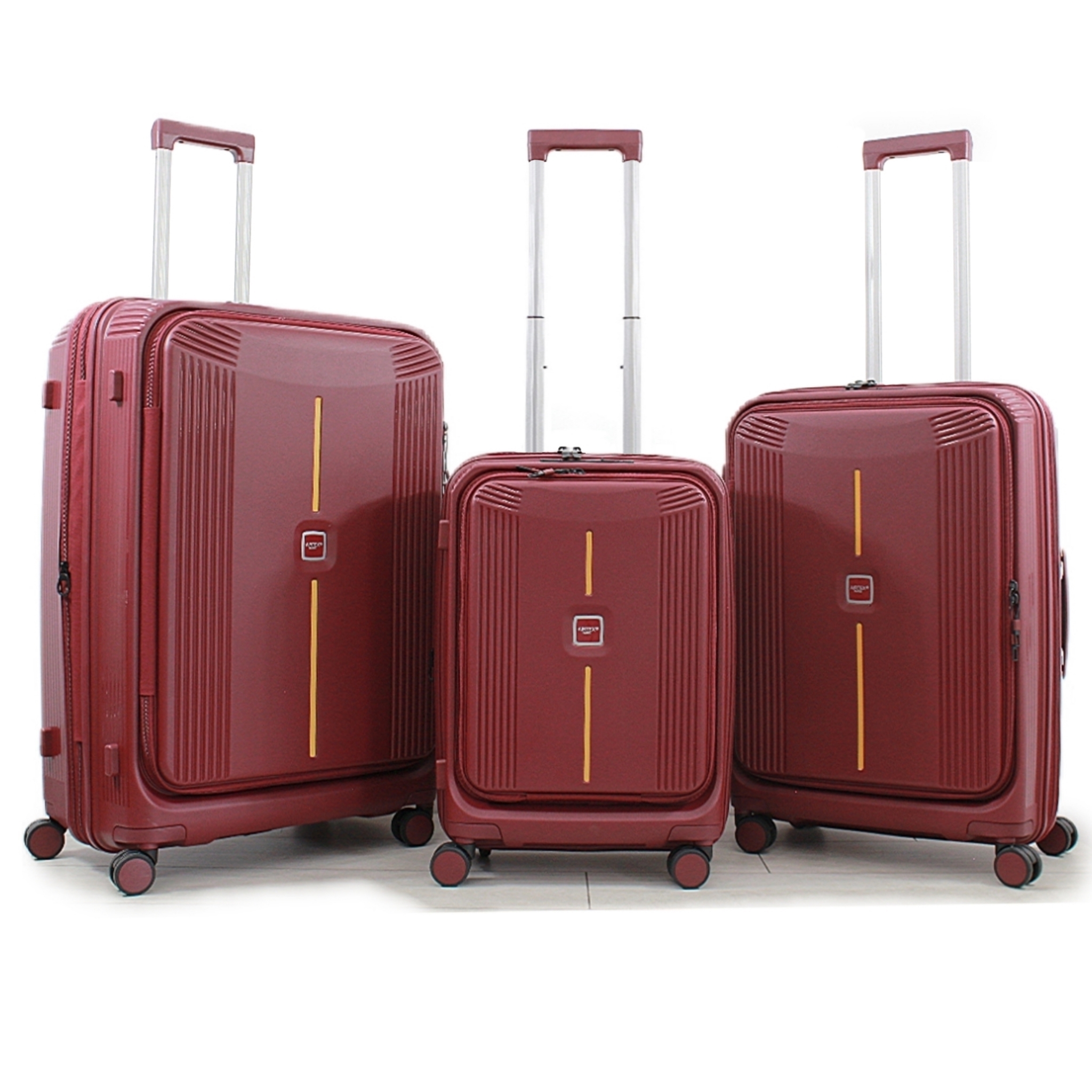 Набір включає три валізи: малу валізу (ручну поклажу) висотою S-55 см і дві великі валізи розмірів M-68 см та L-76 см, які мають функцію розширення об'єму на +5 см.