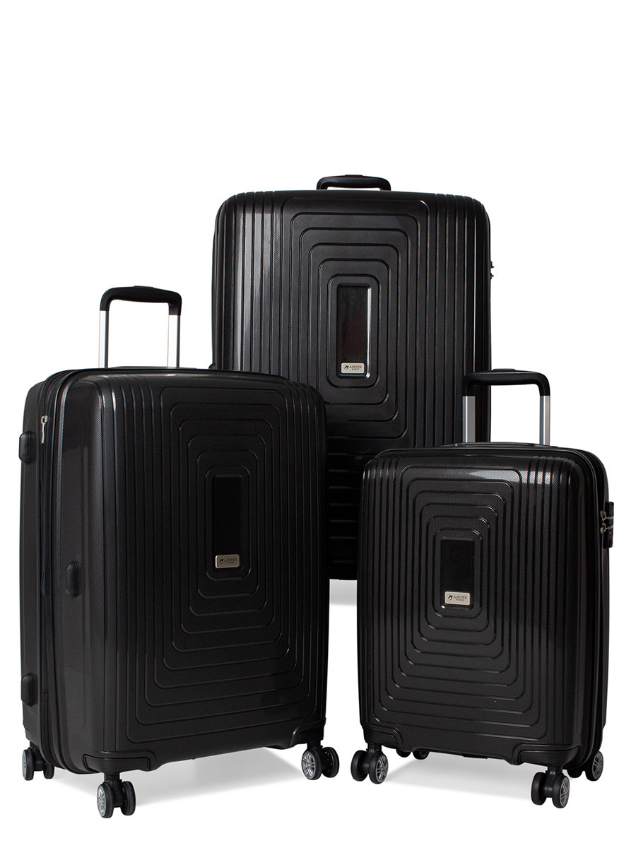 Набор включает в себя три чемодана: компактный чемодан для ручной клади высотой S-55 см, а также два больших чемодана — M-68 см и L-78 см, которые оснащены функцией расширения объема (+5 см).