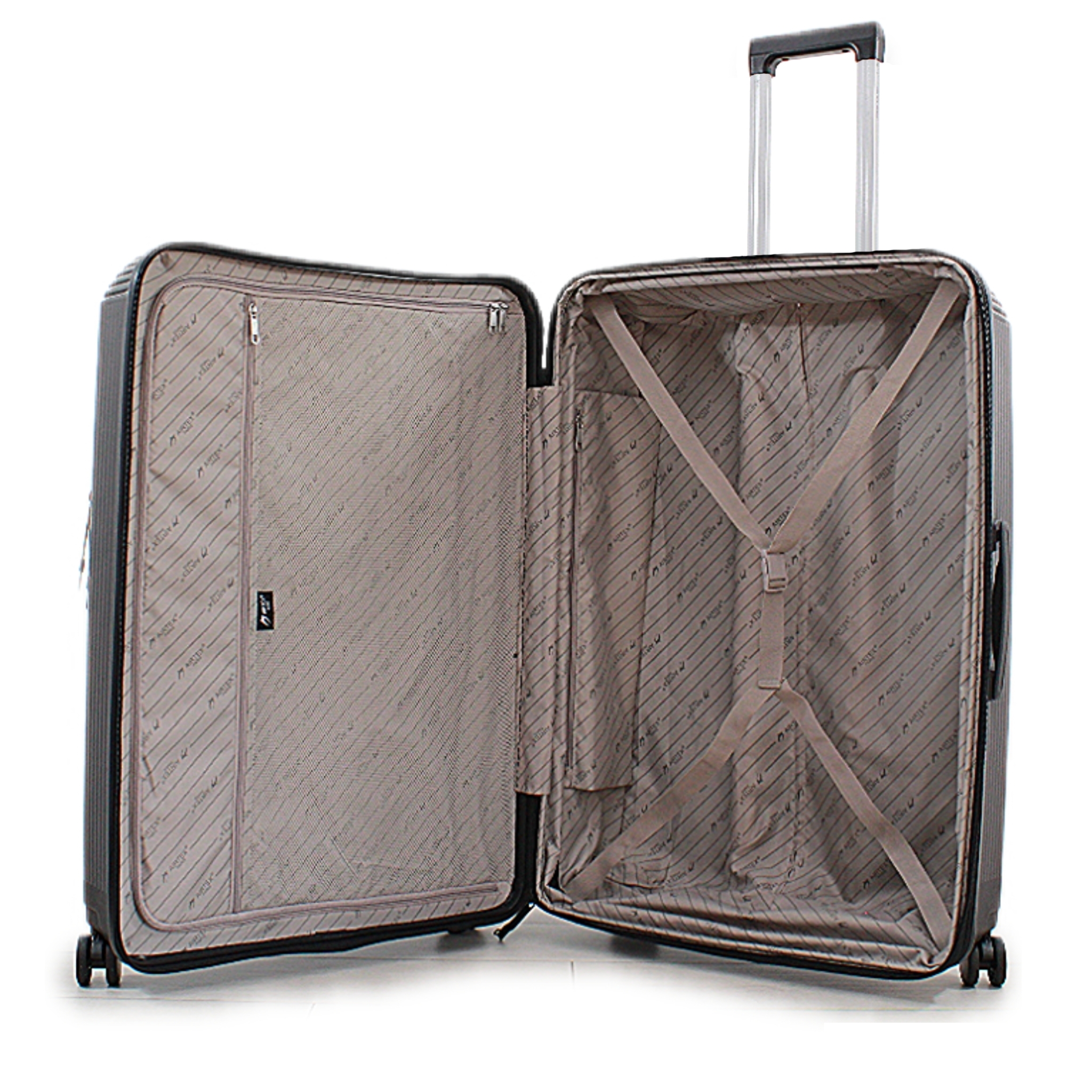 Внутренняя планировка чемодана включает два отделения: одно из них закрывается на молнию, в то время как другое оборудовано ремнями для надежного закрепления багажа, что помогает поддерживать порядок в вещах. Для туалетных принадлежностей и мелочей предусмотрены два потайных кармана на молнии, что упрощает доступ к компьютерной технике при проверках безопасности в аэропорту. Эта концепция подразумевает высокий уровень комфорта, функциональности и качества во время путешествий. Чемодан также оборудован двумя регулируемыми ремнями для оптимальной транспортировки сложенного белья.