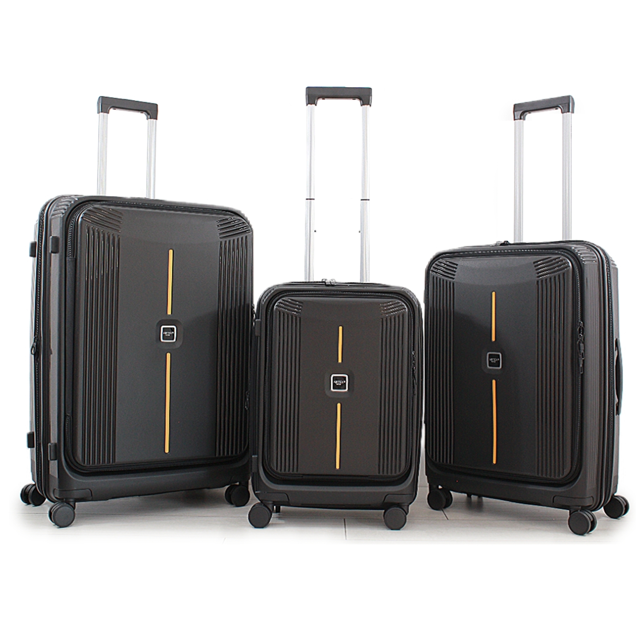Комплект содержит три чемодана: малый S-55 см (ручная кладь) и два больших чемодана M-68 см и L-76 см, каждый из которых имеет функцию расширения объема (+5 см).