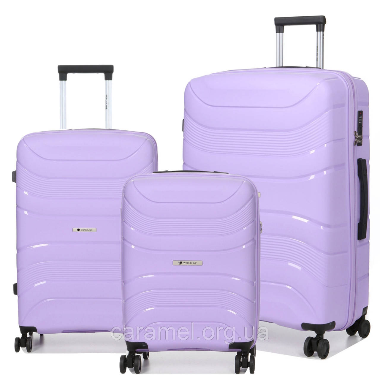 Лінійка валіз Worldline включає кілька розмірів: компактна ручна валіза S-55 см, а також дві просторі валізи – M-65 см і L-75 см. Валіза розміром L-75 см відзначається великою місткістю, що робить її ідеальною для транспортування великої кількості особистих речей. Модель M-65 см стане відмінним вибором для жінок та підлітків, тоді як S-55 см чудово підходить як ручна покложа для більшості авіаперевізників.