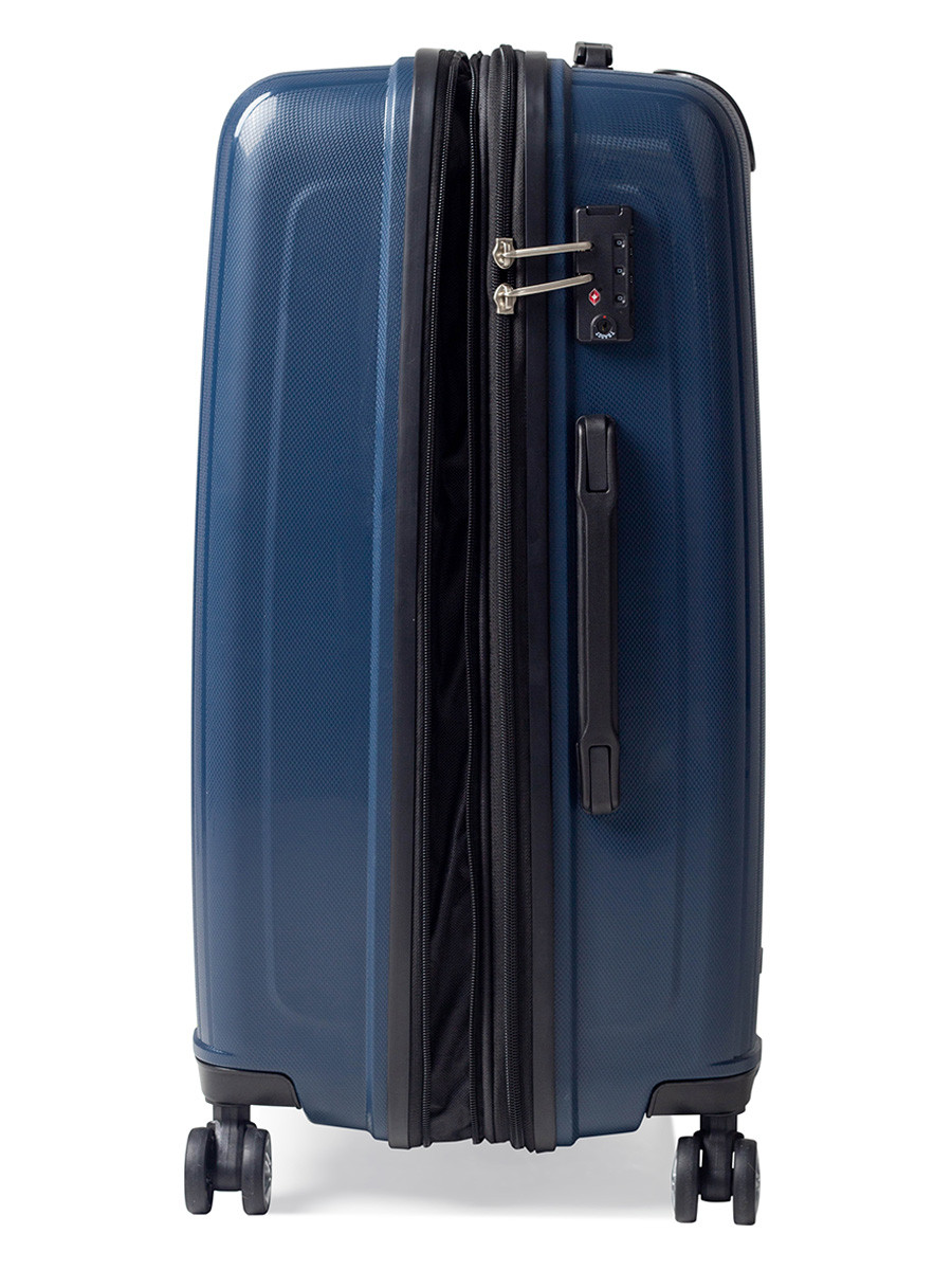 Комплект складається з трьох валіз: компактної для ручної поклажі висотою S-55 см, а також двох великих валіз M-68 см і L-78 см, які можна розширити на додаткові 5 см.