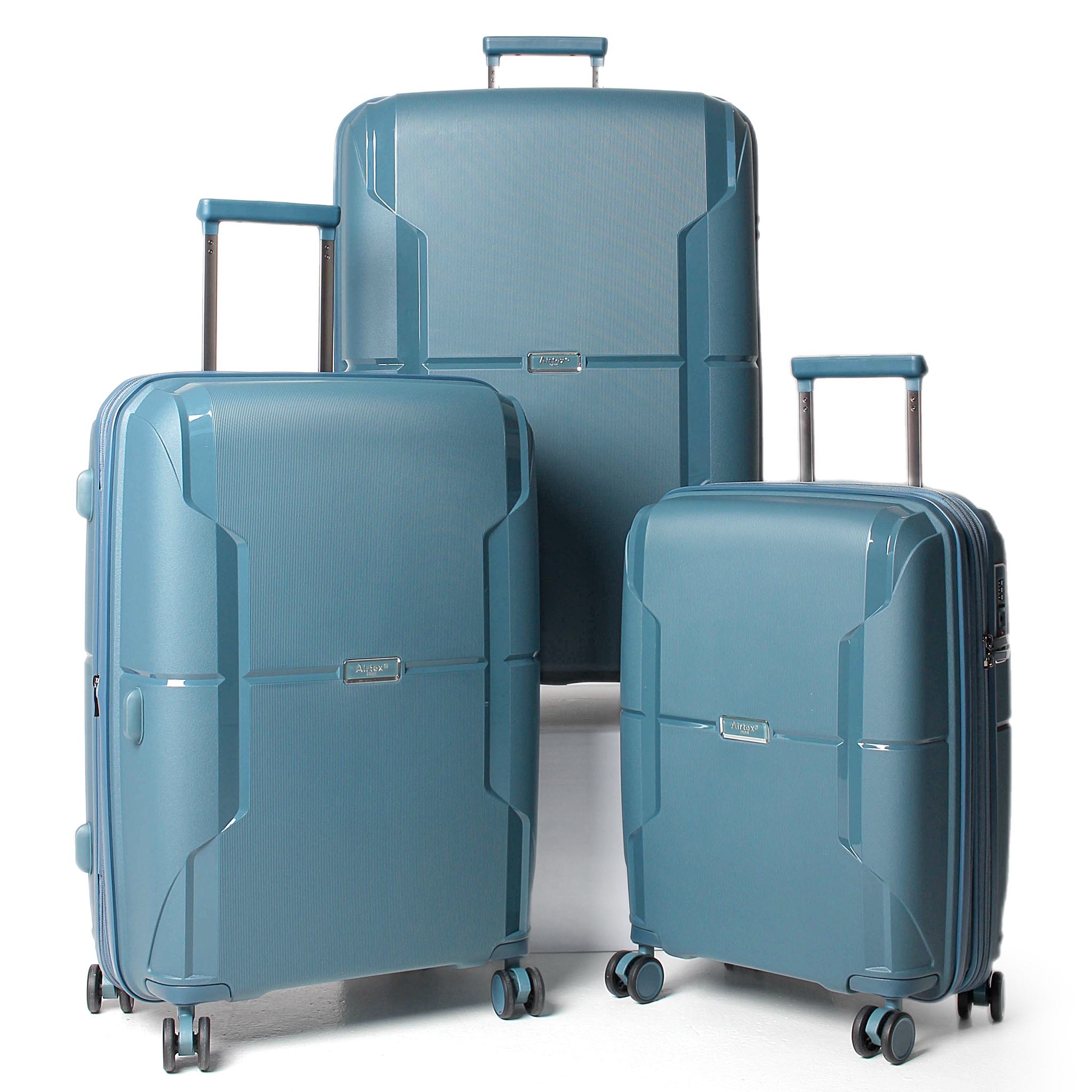 Airtex отличается неповторимым дизайном, который позволит вашему багажу выделиться из толпы. Эти чемоданы изготовлены из 100% полипропилена — материала, широко используемого для изготовления самых качественных чемоданов. Полипропилен славится своей поразительной гибкостью и способностью выдерживать механические повреждения, что подтверждается многочисленными тестами во Франции. Такой багаж идеально подходит для авиаперелетов, ведь он особенно уязвим к повреждениям. Чемоданы имеют матовую текстуру на наружной поверхности, которая способна уменьшить количество царапин, и выдерживают нагрузку до 300 кг, демонстрируя высокую стойкость к царапинам. Молния, предотвращающая взлом, а также кодовый замок TSA LOCK™ обеспечат надежную защиту ваших вещей. Четыре двойных полиуретановых колеса бесшумно вращаются на 360 градусов, что упрощает маневрирование. Чемодан оснащен прочной алюминиевой выдвижной ручкой с несколькими положениями для комфортной транспортировки. Сверху и по бокам чемодана расположены две дополнительные GEL-ручки для удобства при подъеме чемодана, а также боковые ножки, позволяющие ставить чемодан на бок. Внутреннее основное отделение полностью обшито износостойкой подкладкой. Одна часть закрывается на замок и имеет два кармана-органайзера на молнии, тогда как вторая оборудована ремнями для фиксации вещей. Это все гарантирует комфорт и функциональность во время ваших поездок.