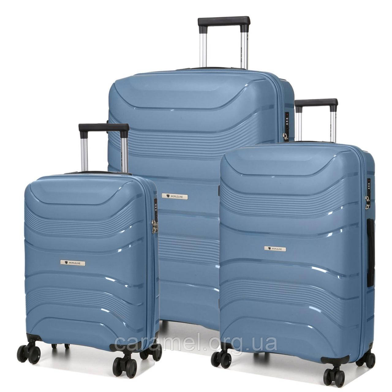 Набор чемоданов Франция (L M S-3шт) полипропилен синий/Worldline 288