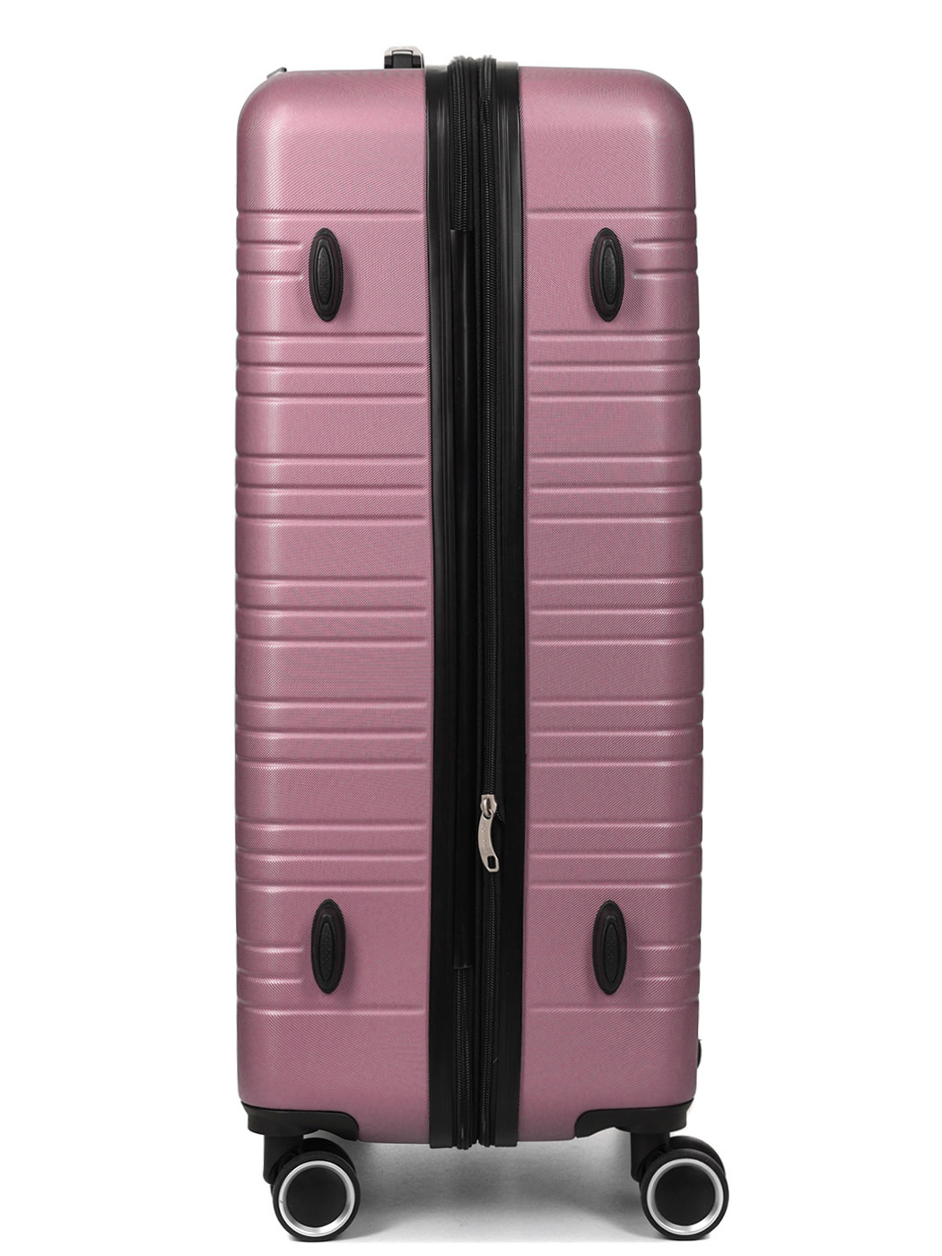 ☑️колеса: м'які, безшумні поліуретанові колеса з підшипниками, які обертаються на 360° і надзвичайно легко маневрують навіть при повному завантаженні валізи;