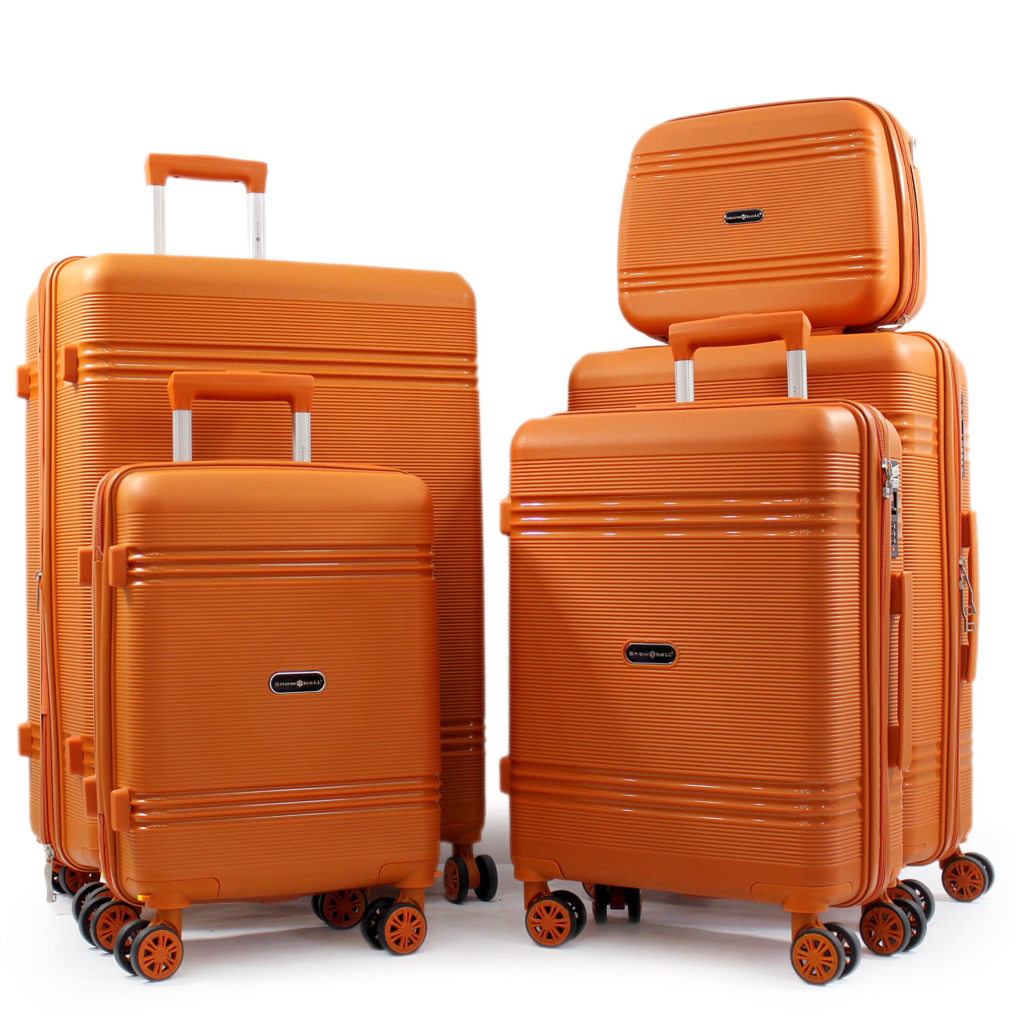 SNOWBALL станут вашим незаменимым партнером в путешествиях и деловых поездках. Этот набор чемоданов состоит из 4 единиц и бьюти кейса: бьюти кейс (BC) предназначен для транспортировки средств личной гигиены или на короткие поездки; мини чемодан (XS) высотой 49 см, идеальный для ручной клади, оборудованный съемными колесами, позволяющими удобно размещать багаж при посадке в самолет; маленький чемодан (S) высотой 55 см для ручной клади, средний (M) – 66 см, большой (L) – 76 см. Средний (M) и большой (L) модели имеют функцию расширения объема (+5 см). Чемоданы изготовлены из 100% полипропилена, известного своей прочностью и стойкостью к ударам. Оснащенные системой легкого передвижения, чемоданы имеют мягкие полиуретановые колеса на вращающихся на 360° металлических подшипниках, что обеспечивает простоту маневрирования даже при максимальной загрузке. Выдвижная алюминиевая телескопическая ручка регулируется в нескольких сборках, чтобы обеспечить максимальный комфорт при транспортировке. Трехзначный кодовый замок TSA обеспечит безопасность ваших вещей во время таможенного контроля, а усиленная молния №10 гарантирует их сохранность. Для удобства переноски сверху и по бокам чемодана расположены две прорезиненные ручки GEL (для моделей L, M и S), а также дополнительная ручка для модели XS. Каждый чемодан имеет ряд боковых ножек, что позволяет удобно расположить его горизонтально. Внутреннее пространство разработано с учетом всех нюансов для хранения ваших вещей: один отсек оборудован крепкими ремнями для фиксации, а другой закрывается перегородкой с замком. Есть также дополнительный сетчатый карман на молнии. Уникальным дизайном этой модели является фурнитура в цвете чемодана.