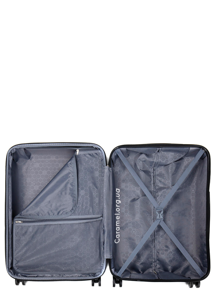 Середня валіза M: 65x46x28(+5) см- Розмір корпусу: 58x44x27(+5) см (без виступаючих елементів: коліс, упорів і ручок)