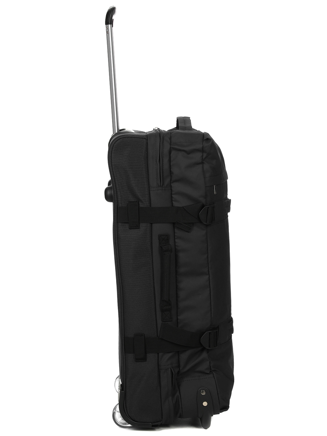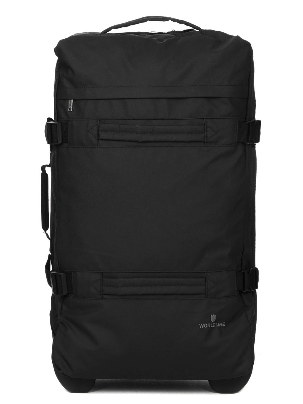 Сумка большого формата Worldline Paros 70 см отличается простотой в транспортировке благодаря двум силиконовым колесам и выдвижной алюминиевой телескопической ручке с несколькими фиксированными положениями, что обеспечивает комфорт при использовании. Она имеет несколько усиленных ручек для удобства подъема по лестнице или горизонтальному перемещению. Для предотвращения износа ткани на дне предусмотрены специальные защитные усиления, а компрессионные ремни помогают удерживать содержимое на месте.